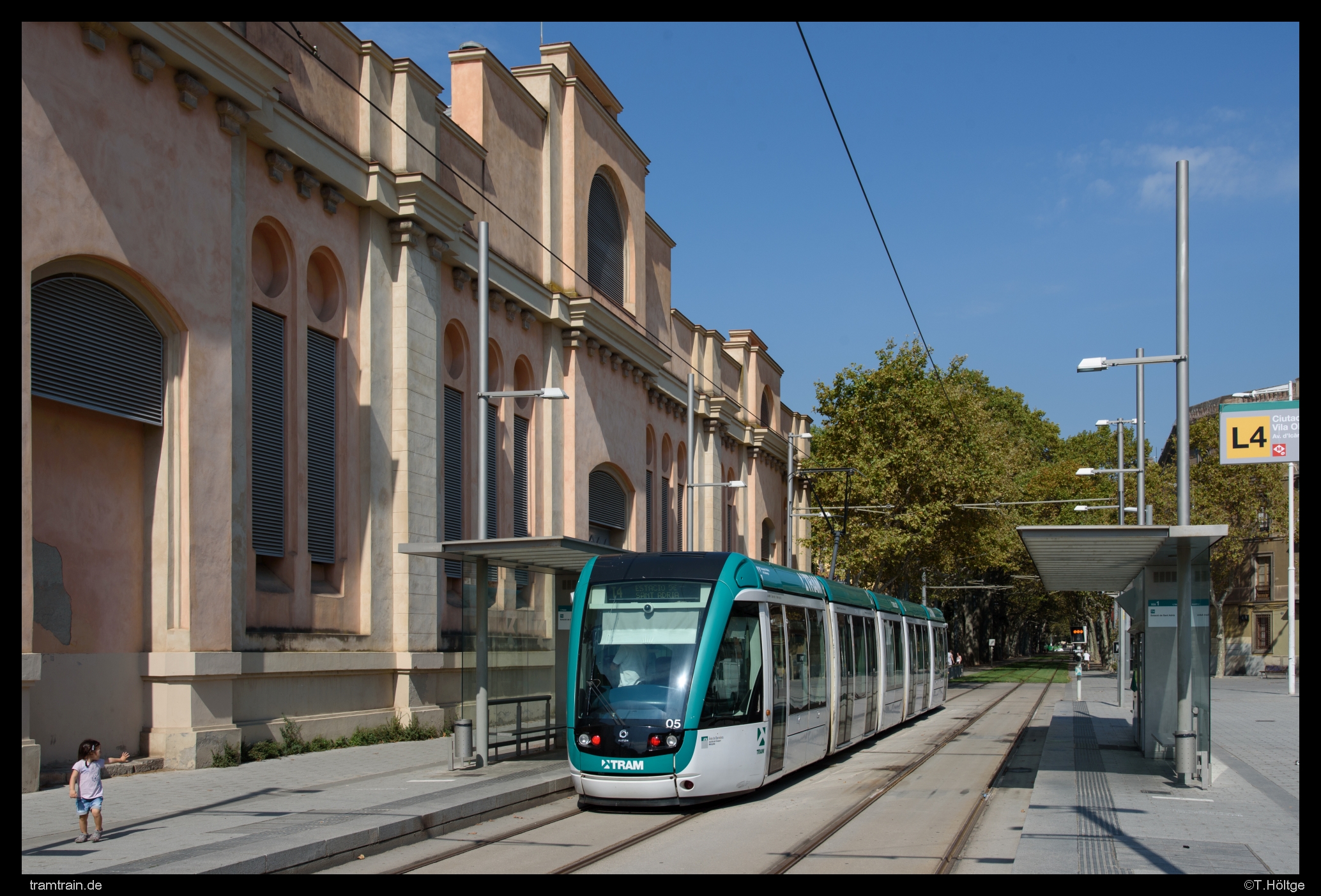 Die Zentrumsnahe Endstation “Ciutadella – Vila Olímpica” der Linie 4 des östlichen Netzes. Hier wartet Wagen 14 auf die Abfahrt.