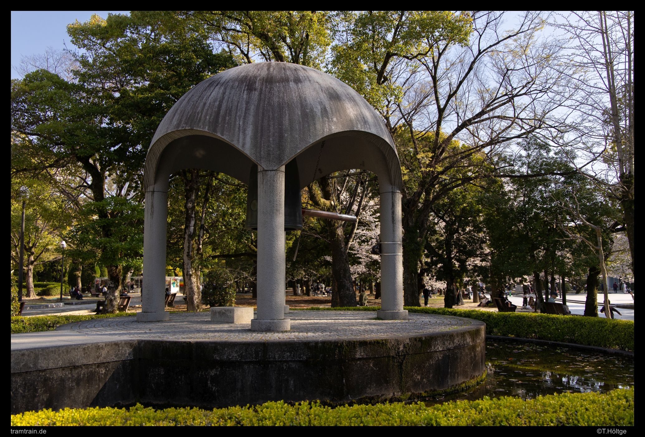 Die Bell of Peace auf Höhe des Atomic Bomb Domes im Friedenspark.