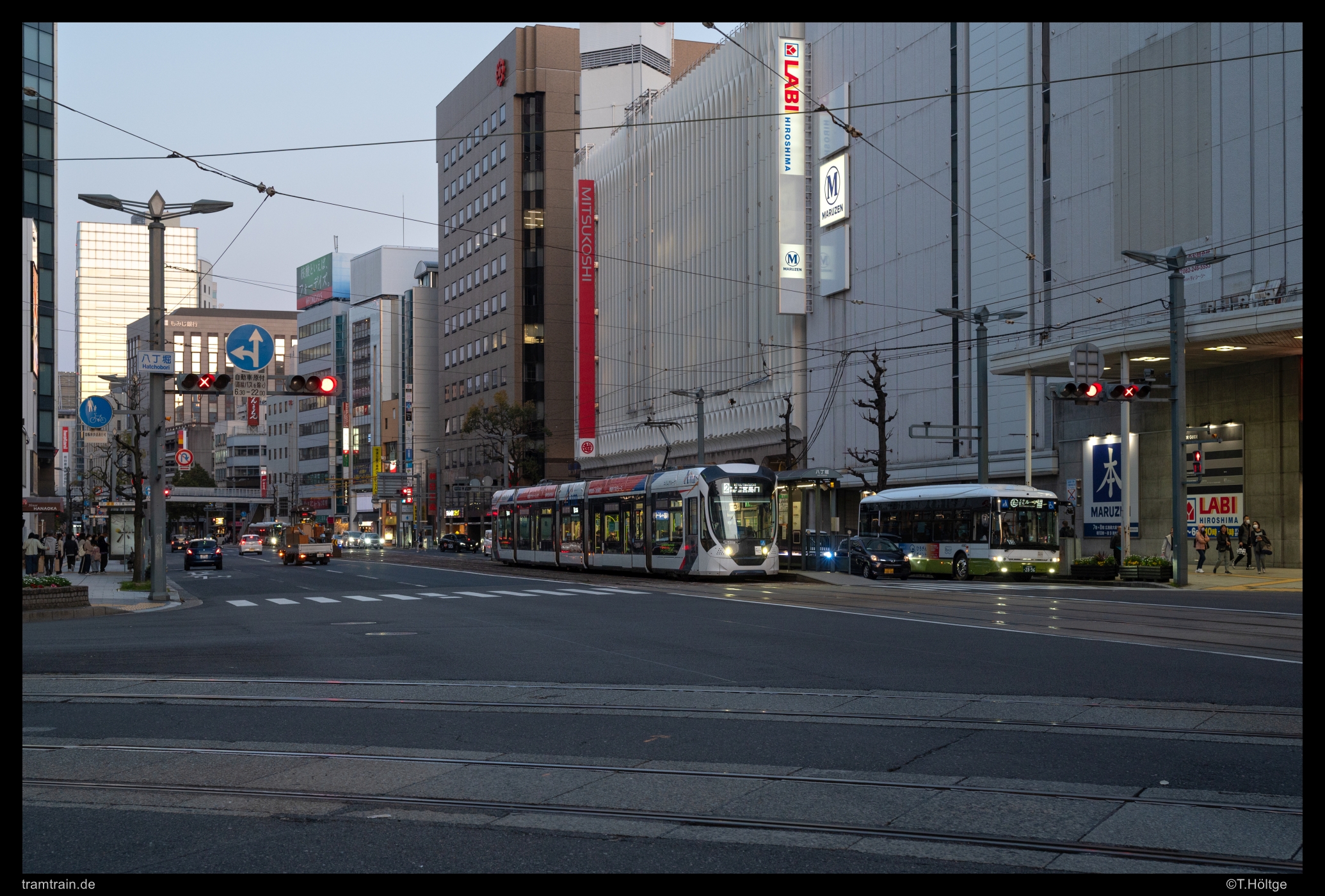 2 1/2 Tage sind für Hiroshima eingeplant und damit der längste Stopp bei einem Betrieb auf dieser Reise. Durch das vergleichsweise große Netz und den umfangreichen Wagenpark, gepaart mit dem üblichen zähen Vorankommen bei Japans Straßenbahnen, werden wir die Zeit hier gut füllen können. Zu Beginn machen wir uns etwas vertraut mit dem Betrieb und streifen an diesem Sonntag eher planlos durch die Gegend.