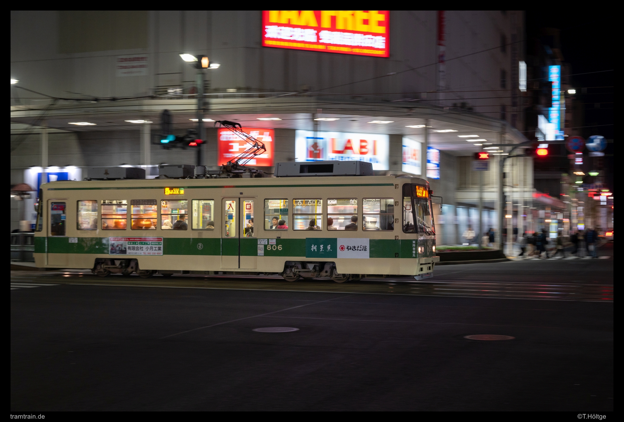 Wagen 804 als Linie 6 auf der Aioi-Bridge.