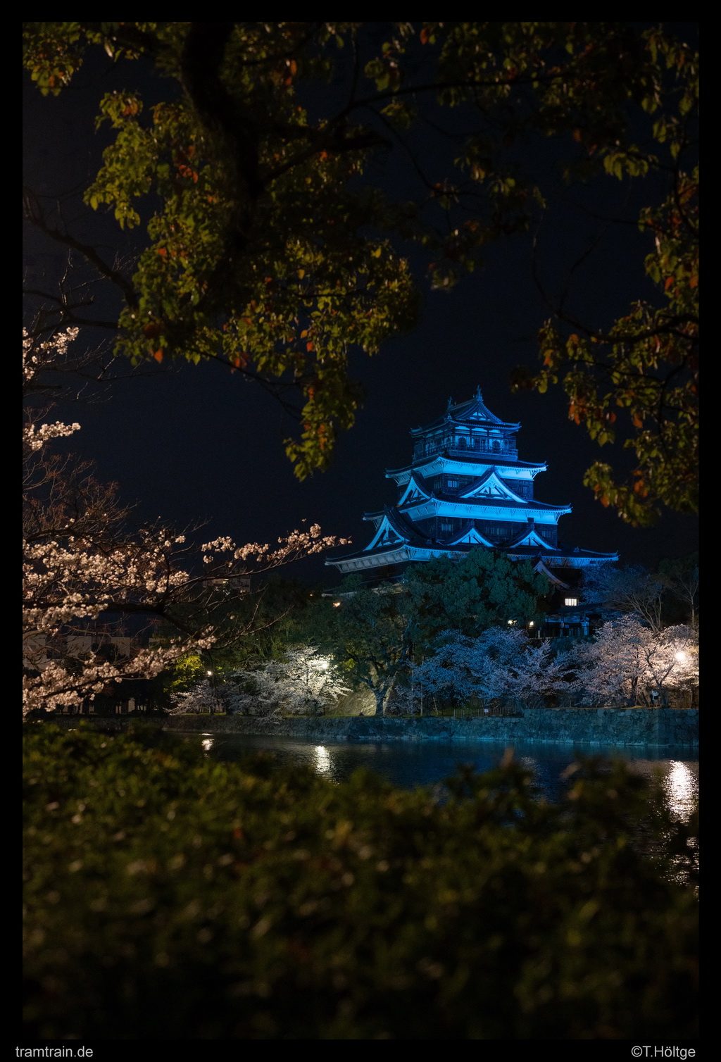 Mit der gerade in voller Pracht stehenden Kirschblüte fasst schon kitschig. Müsste man eigentlich auch am Tag nochmal hin.