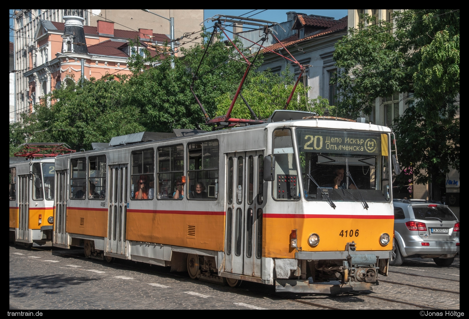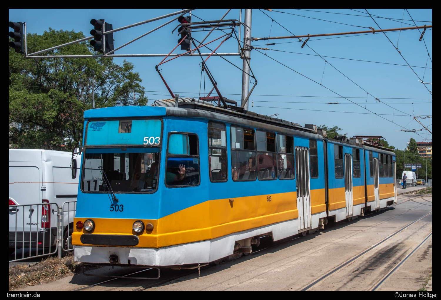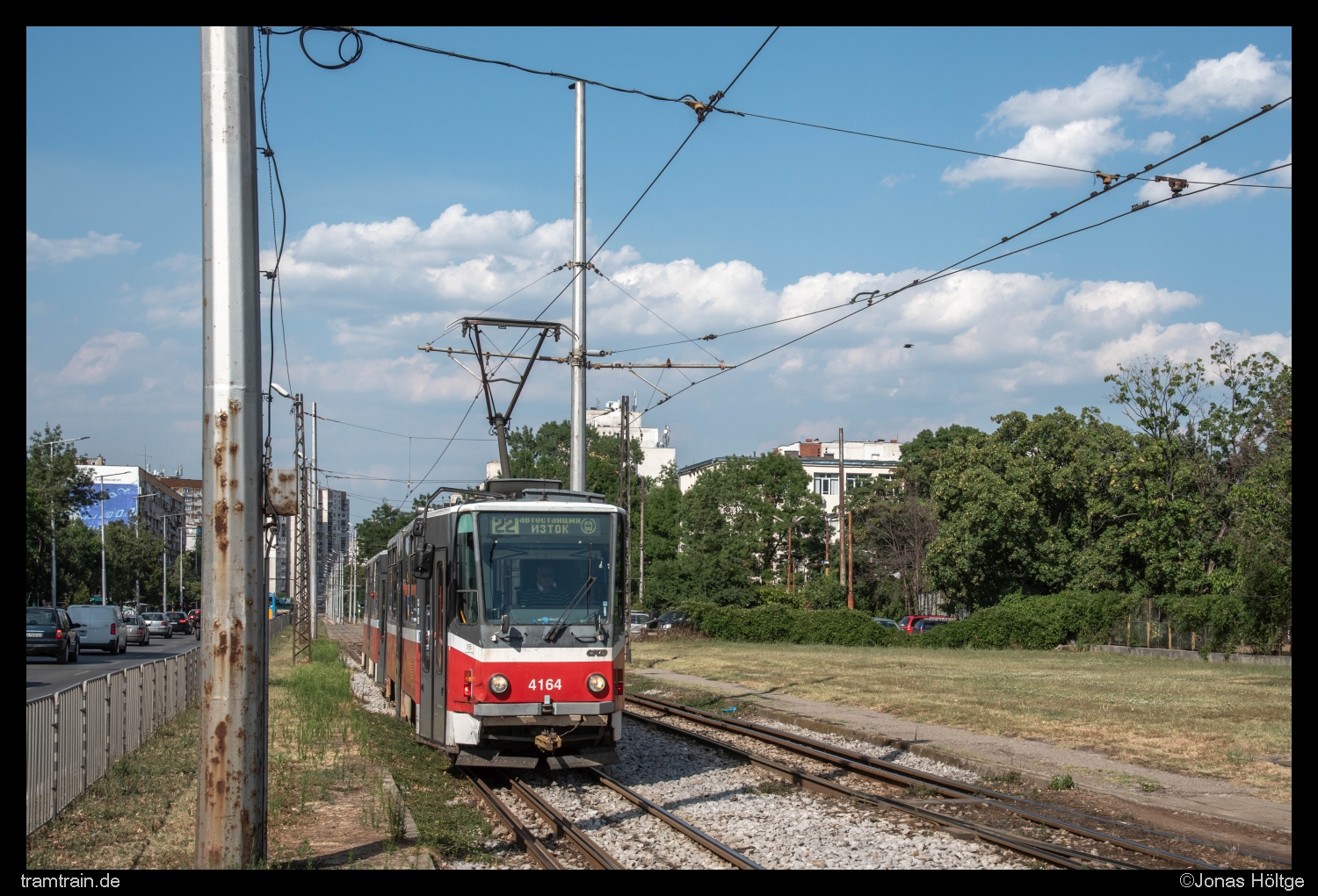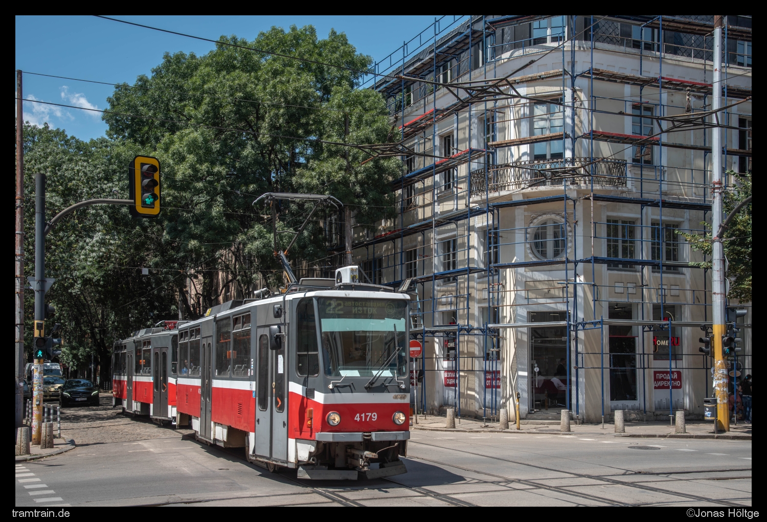 Zuletzt stellen die T6A5 die mit Abstand größte Baureihe im Regelspurnetz und die zweitgrößte Baureihe im gesamten Betrieb mit 54 Fahrzeugen dar. Die von CKD gebauten Fahrzeuge wurden ursprünglich 1995 bis 1997 nach Prag geliefert. In den Jahren 2016 bis 2020 gelangten alle 54 heute vorhandenden Fahrzeuge nach Sofia und verkehren dort seitdem mit den Nummern 4140 bis 4193. Wie bereits bei den Baseler Fahrzeugen, wurde auch hier auf eine Umlackierung verzichtet, weshalb die Wagen noch immer mit der Prager Lackierung durch Sofia verkehren. Der Einsatz beschränkte sich bei meinem Besuch lediglich auf die Linie 22.