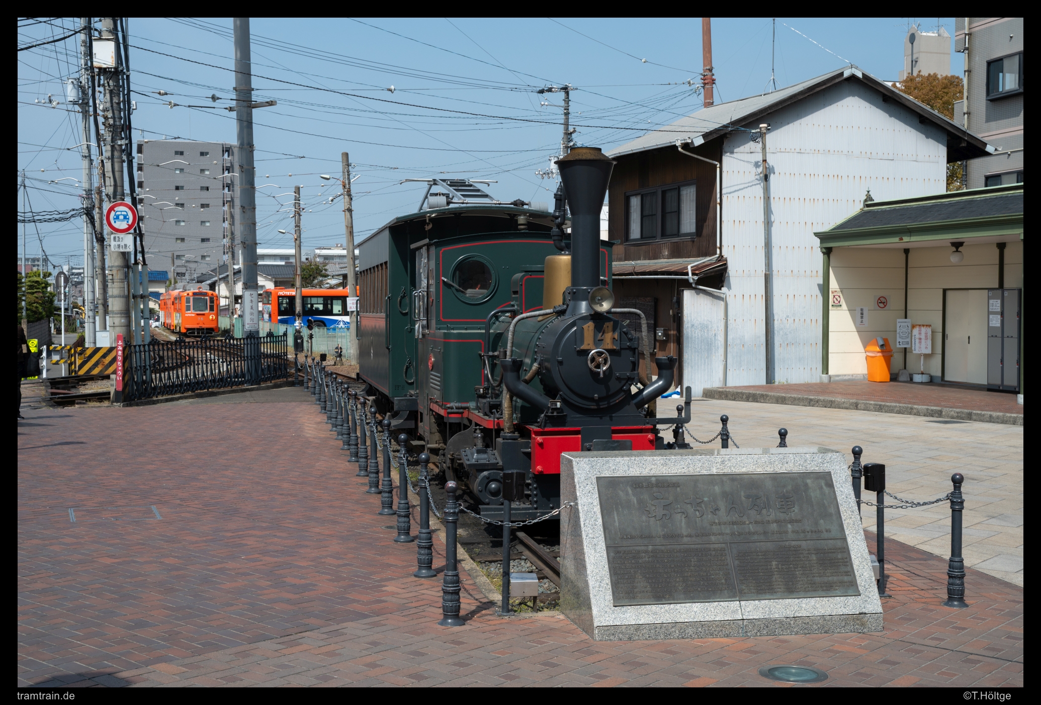 Der Botchan Train referenziert an die Anfänge der Iyo Railway aus dem Jahr 1988, als diese mit dem Dampfbetrieb einer 762mm Strecke begann. Nachdem die Takahama Line in den 1930er-Jahren elektrifiziert und umgespurt wurde, endete der Betrieb mit den urigen kleinen Krauss-Maschinen und ihren Wägelchen. Eine Originalmaschine blieb allerdings erhalten und 1977 wurde die erste Replica-Generation noch als Dampfmaschine gebaut und bei verschiedenen Ausstellungen als Tourismusbotschafter für Matsuyama vorgeführt. Einen bis heute anhaltenden Hype erfuhr der “Dotchan Train” durch einen Film aus dem Jahr 1988.
