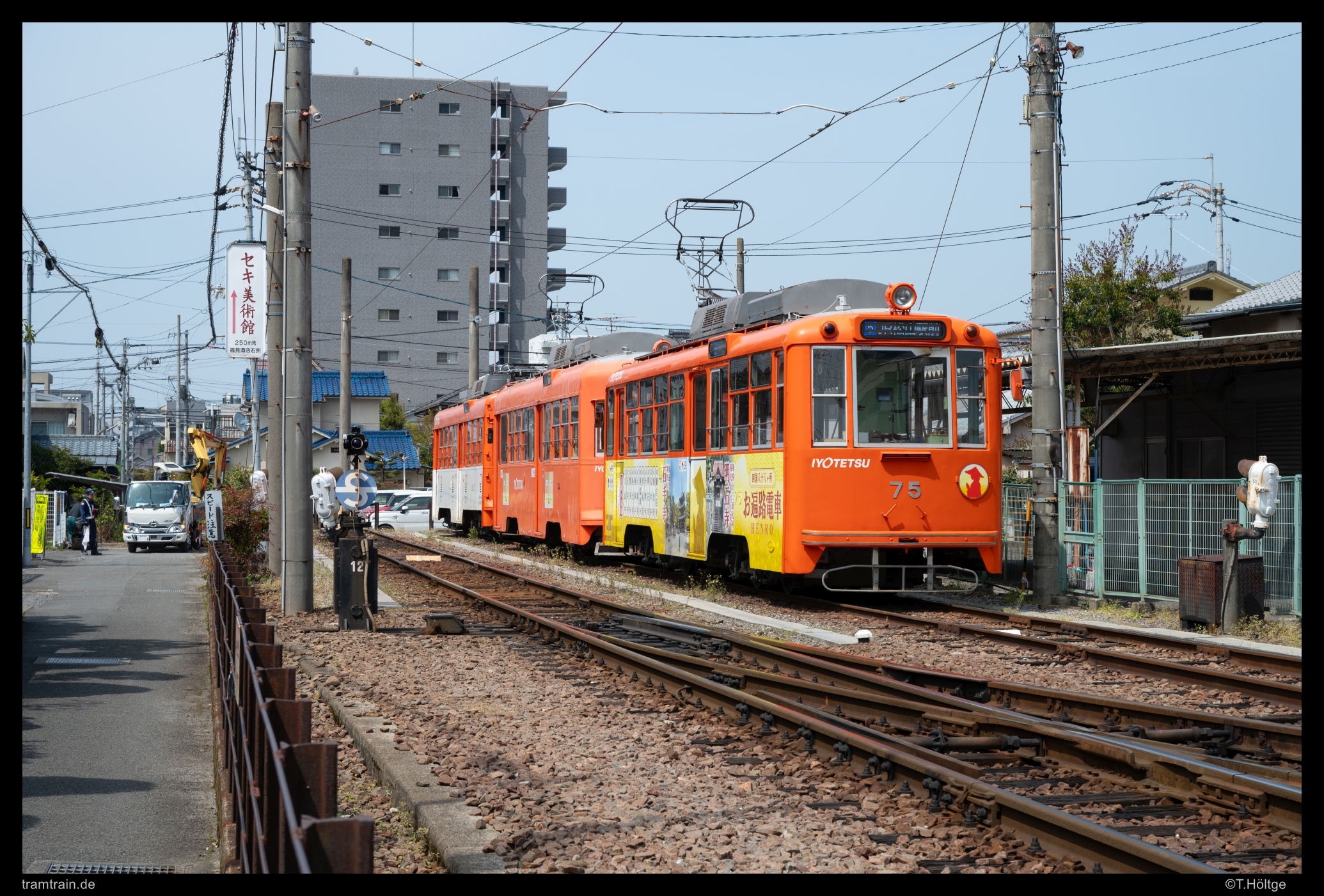 Auch Wagen 75 hat schon wieder eine komplette Tour auf der Linie 5 absolviert und erreicht Richtung Dogo Onsen die Haltestelle Katsuyamacho (18).