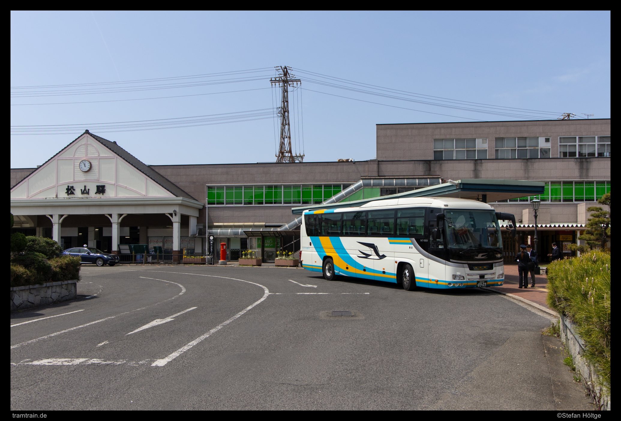 Der Highway Bus vor der JR Station in Matsuyama. Nach Kochi die deutlich schnellere Option, sodass wir uns in rund 6 1/2 Stunden wieder hier einfinden würden.