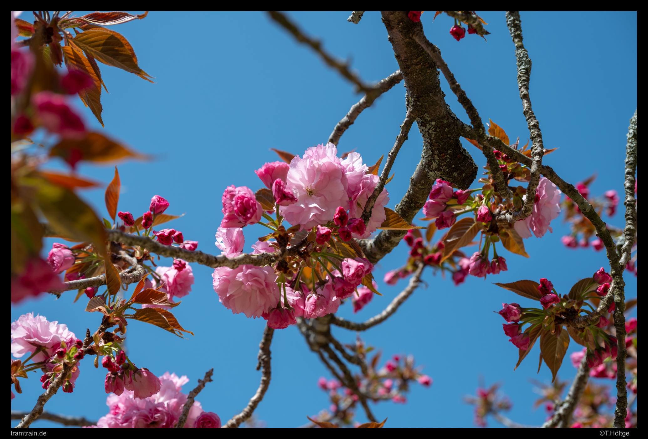 Während wir die eine Haltestelle zum Hotel weiterschlendern, fällt der Blick noch einmal zurück auf die etwas surreale Szene eines schweren Triebwagens mitten auf der Straße in der Stadt.