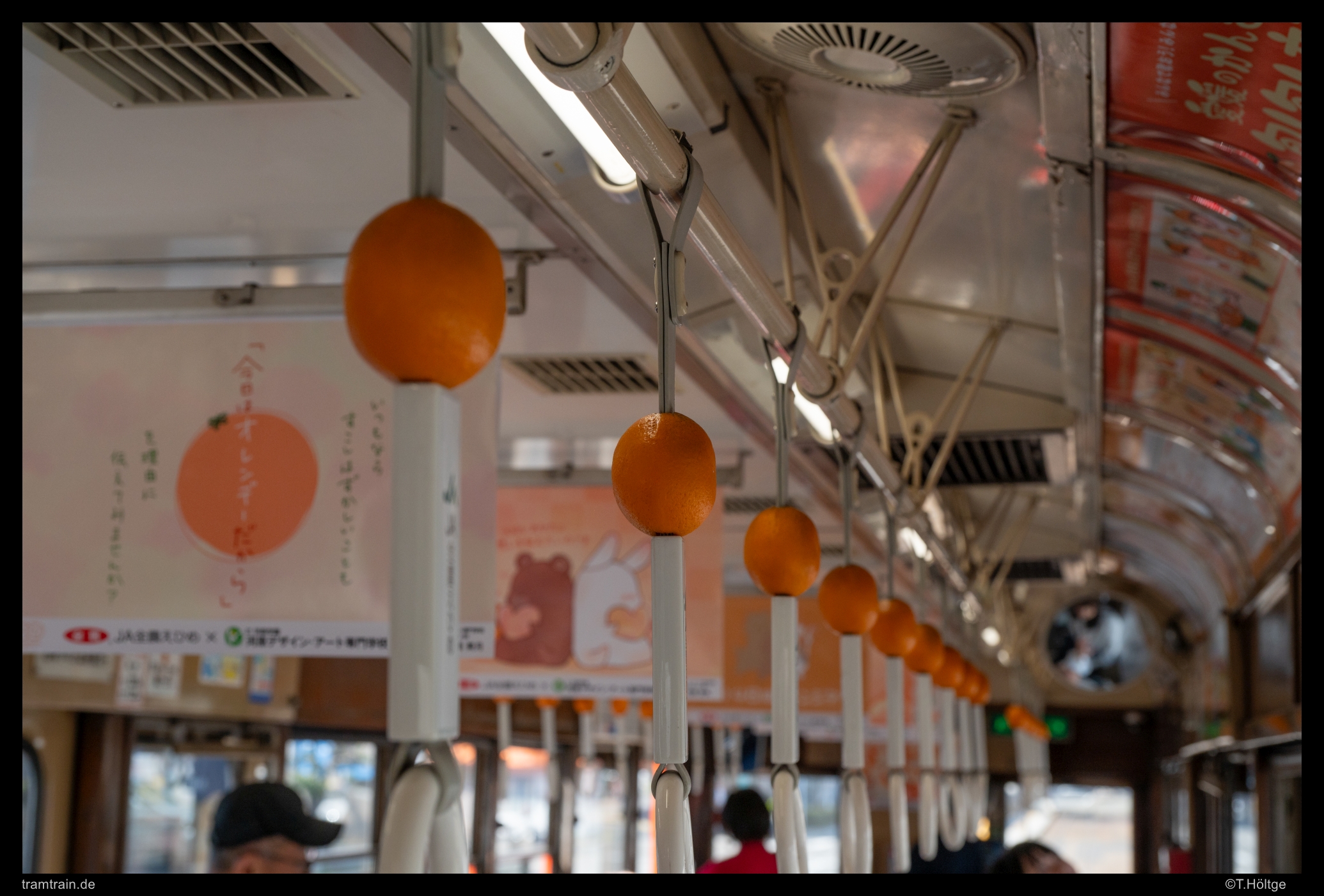 Mitfahrt im Wagen 51 auf der Linie 3 zwischen Minamimachi (22) und Dogo Onsen (24).