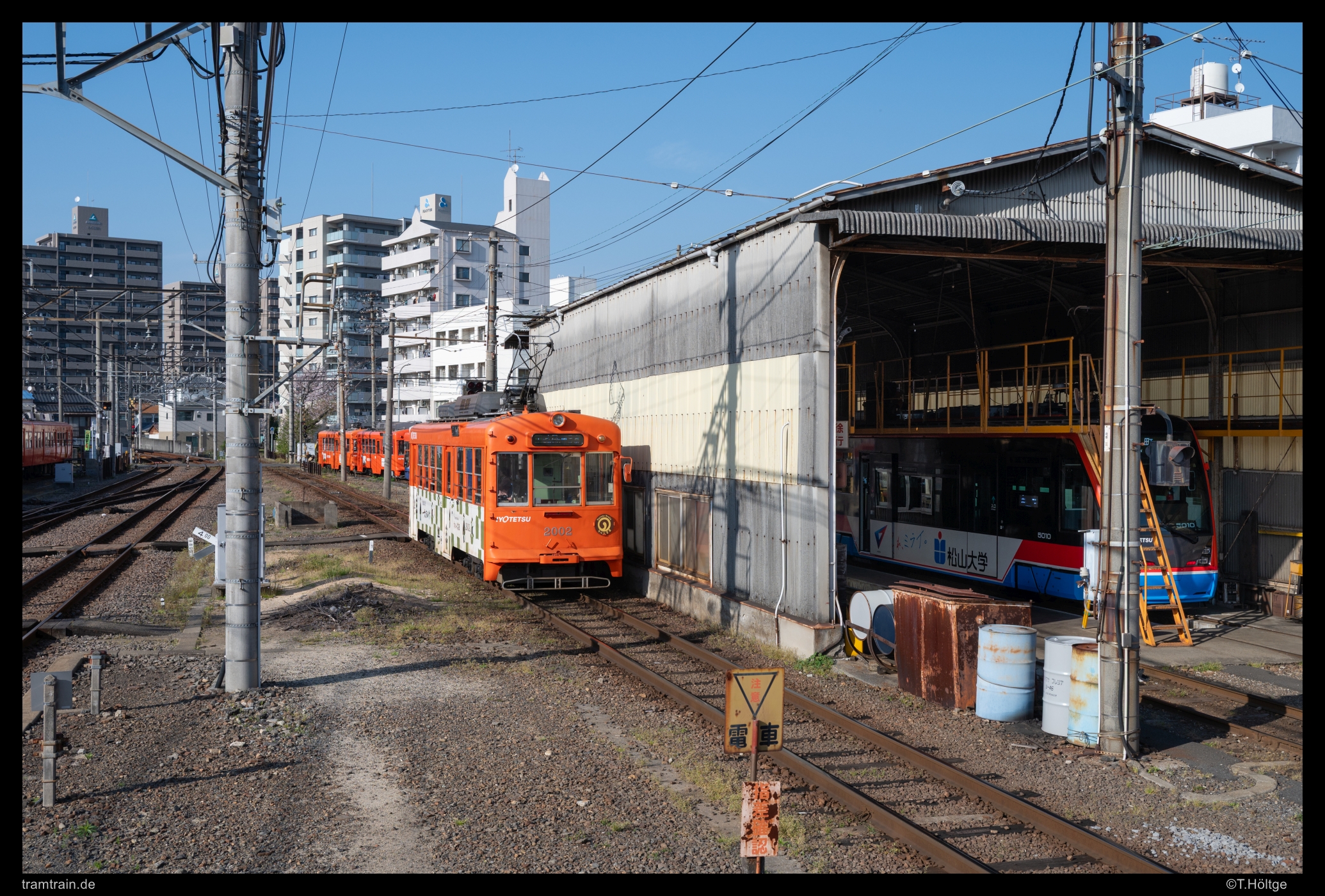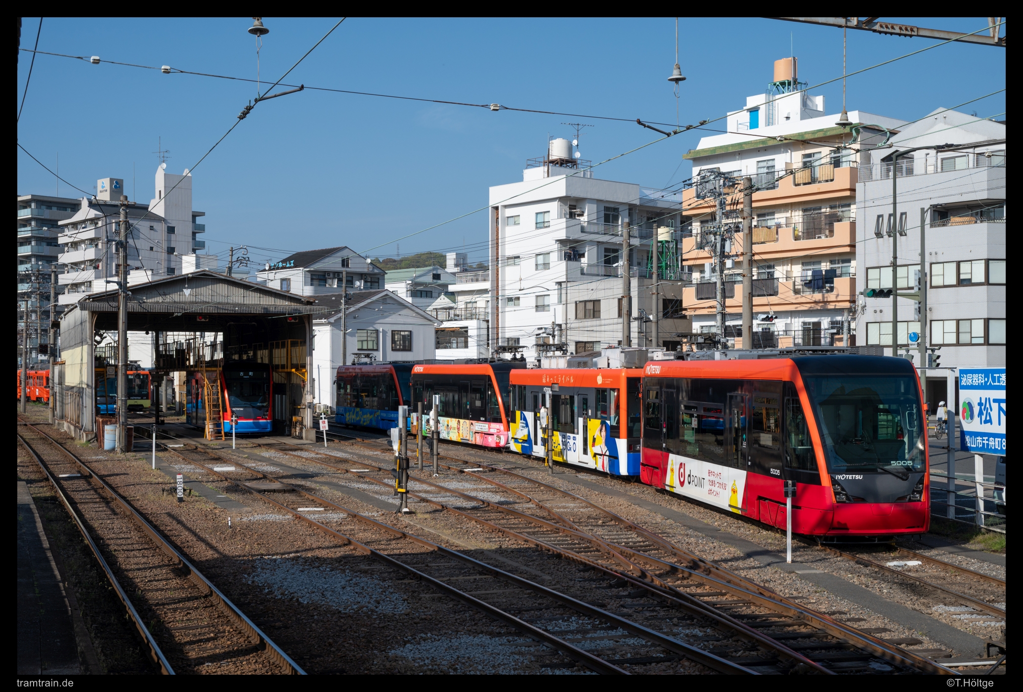 Die noch bis 2025 ausgelieferten Niederflurwagen vom Typ MoHa 5000 dominieren gemeinsam mit den MoHa 2100 inzwischen eindeutig den Auslauf der Straßenbahn. Abseits der Rush-Hour sind selbst zahlreiche Niederflurwagen überzählig. Abhängig vom Schadbestand und der Einsatzstabilität, dürften die Niederflurwagen inzwischen wohl für den Betrieb ausreichen, wenn alle MoHa 5000 in Betrieb genommen sind. Dennoch ist es in Japan nicht auszuschließen, dass einige der Altwagen weiterhin im Bestand bleiben, von denen neben den drei nach der Rush Hour am Dogo Onsen geparkten Fahrzeugen, auch hier am Depot eine ganze Reihe herumstand.