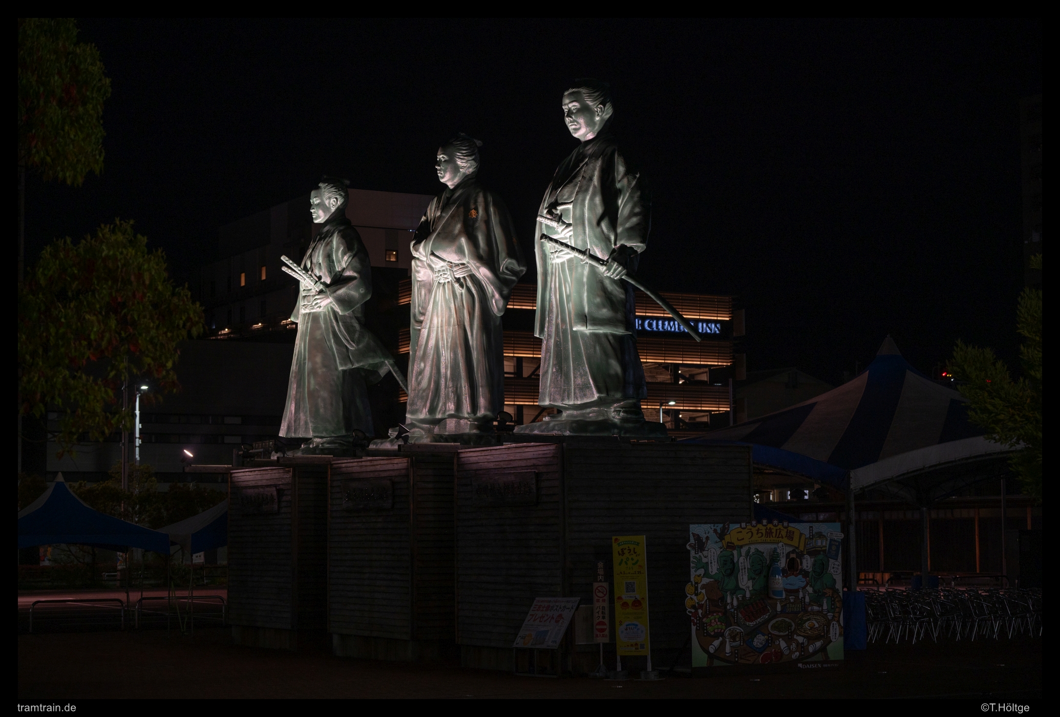 Am Bahnhofsvorplatz von Kochi stehen die drei Tosa Samuarai.