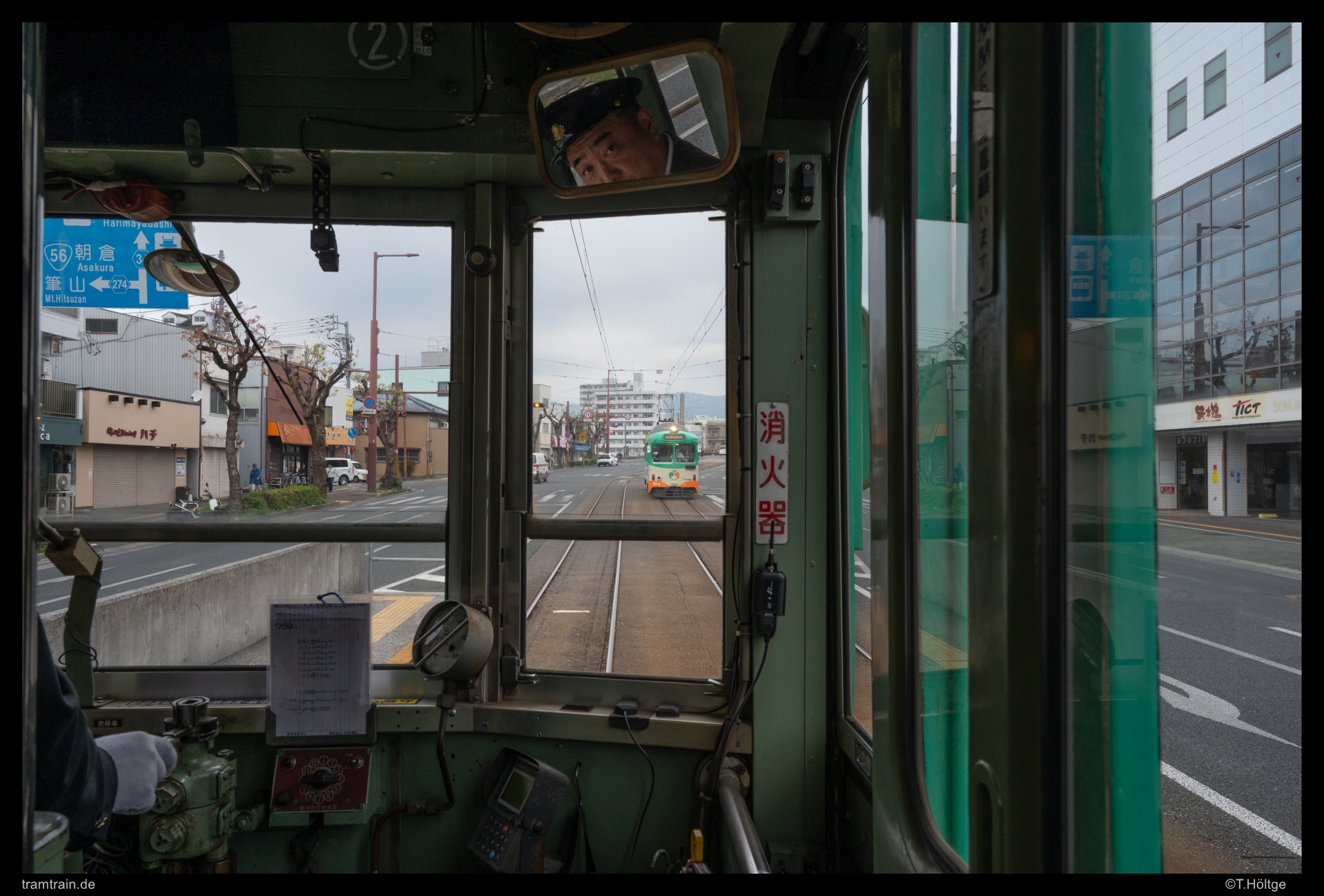 Wir fahren auf dem Abschnitt vom Bahnhof zur zentralen Kreuzung Harimayabashi mal wieder ein Stück mit im doch recht anderen Wagen aus Gifu: