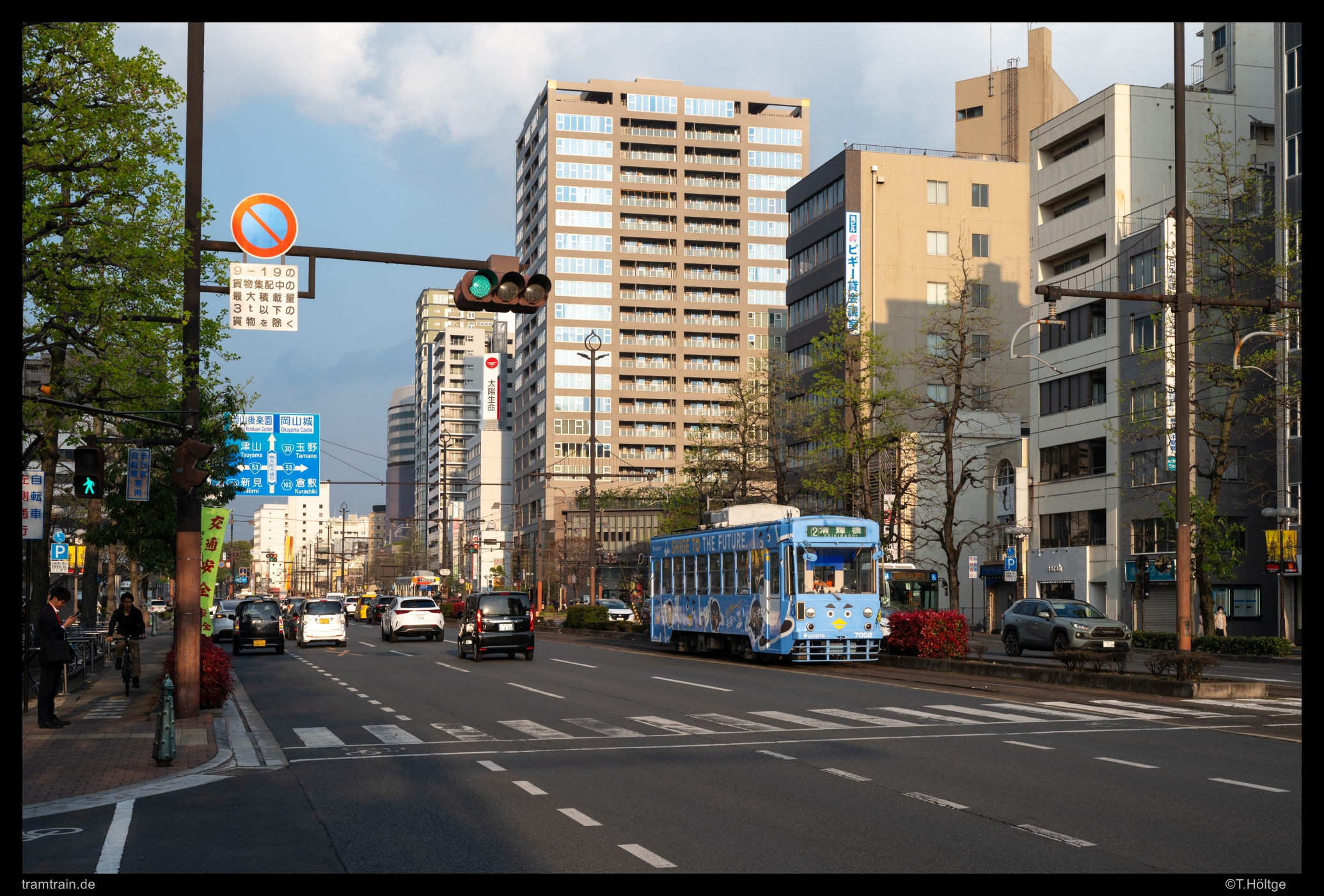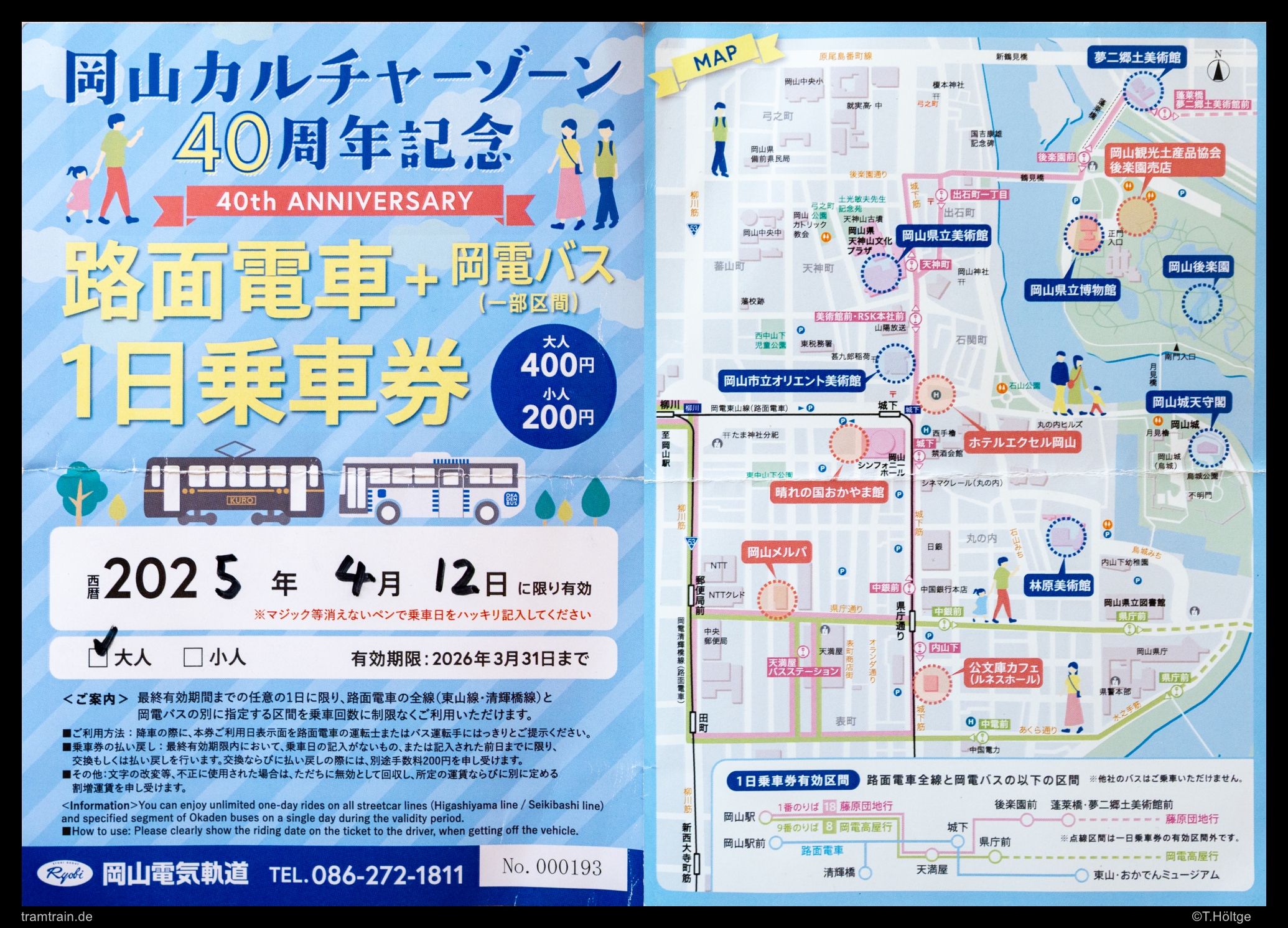 Die Präfekturhauptstadt Okayama zählt zwar rund 720.000 Einwohner und ist damit in der Region die größte Stadt nach Hiroshima, das Straßenbahnnetz zählt mit nur zwei Linien und einer Streckenlänge von gerade einmal 4,7 km aber zu den kleinsten des Landes. Anders als die beiden letzten Städte unserer Reise auf Shikoku, ist Okayama wieder bequem mit dem Shinkansen erreichbar. Die Züge auf dem San’yō-Shinkansen zwischen Shin-Osaka und Hakata halten an der zentralen Okayama Station, die auch vom Kapspurnetz erschlossen ist.