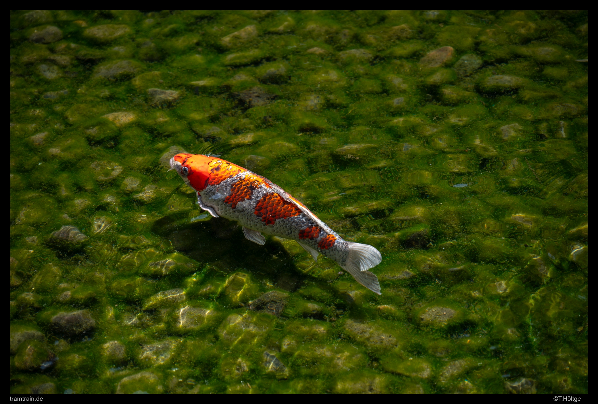 In den Teichen ziehen unzählige Zierkarpfen ihre Runden.
