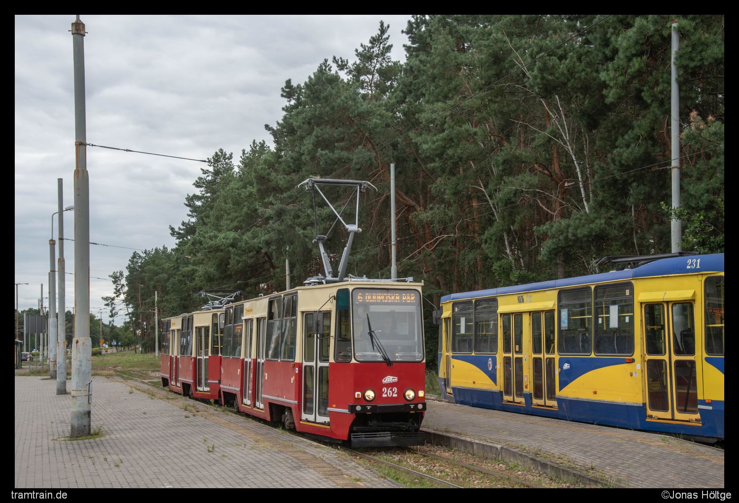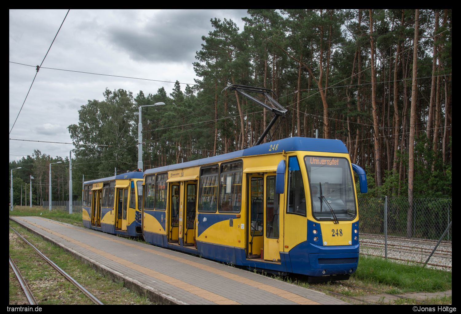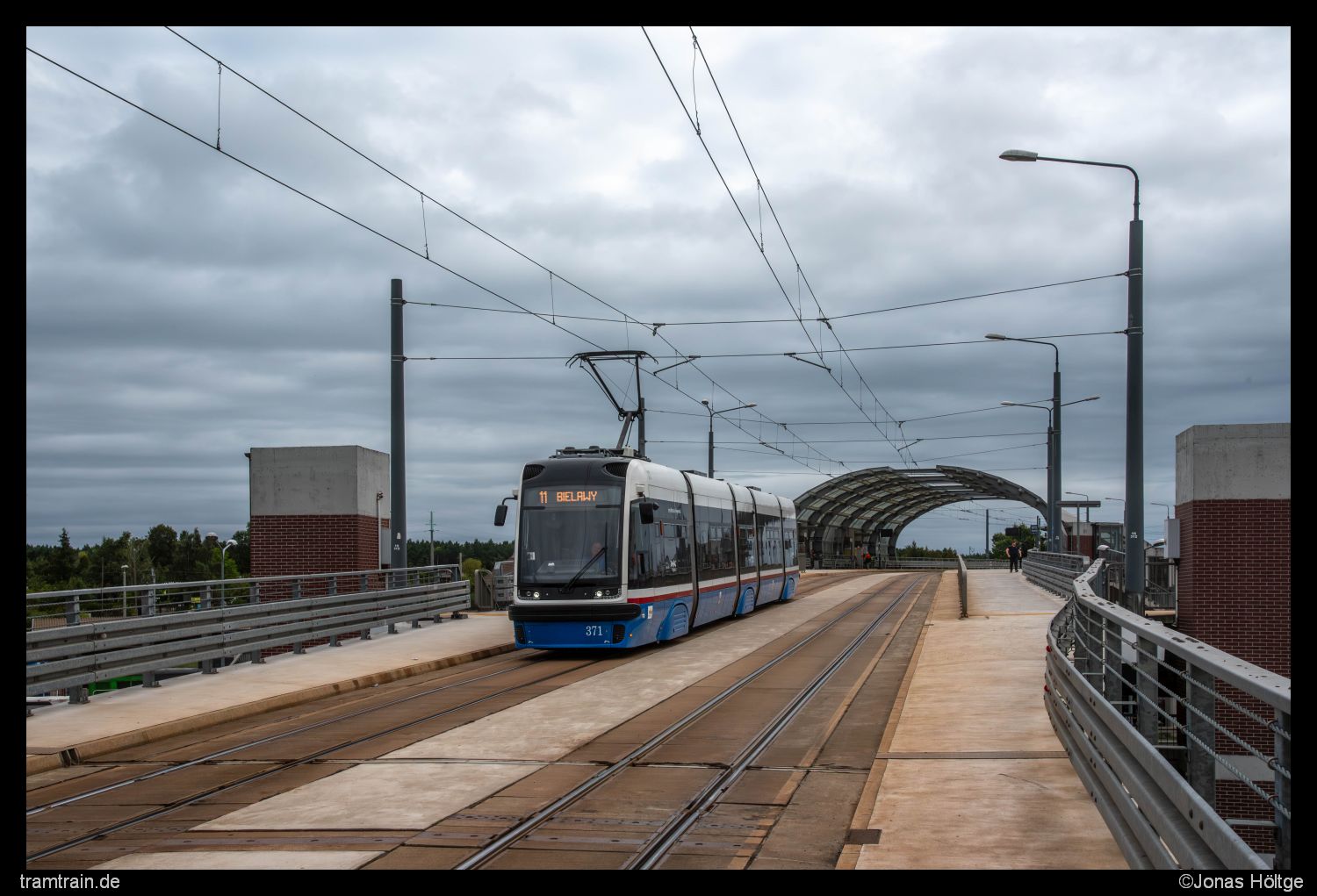 Zu gewohnter Uhrzeit klingelte der Wecker. Ich wollte heute keine Zeit verschwenden, indem ich später als gewohnt aufstehe, denn das Programm für heute war durchaus gut gefüllt. Zunächst wollte ich die erste Hälfte des Tages noch hier in Bromberg nutzen, um offene Punkte auf meiner Liste abzuarbeiten. Ganz oben auf meiner Liste standen dabei natürlich die Altwagen, die sich im gestrigen Sonntagsverkehr nicht gezeigt hatten. Zudem wollte ich mich heute dem langen Linienast nach Łoskoń annehmen, den ich gestern nicht mehr geschafft hatte. Da dort auch jeden Menge Linien rausfahren sollten, würde ich an der Strecke relativ viel vom Auslauf des heutigen Tages mitbekommen. Ein Blick aus dem Fenster am Morgen brachte jedoch einen kleinen Dämpfer. Völlig Wolken-verhangen präsentierte sich der Tag zu Beginn. Ein Blick auf dem Wetterbericht machte auch nicht gerade viel Hoffnung, dass sich daran den Tag über irgendwas ändern sollte. Naja egal. Es half ja nichts. Trotzdem ging es erstmal aus dem Hotel und direkt zur Haltestelle. Von dort startete ich in Richtung Łoskoń. Bis zur Station Most Kazimierza Wielkiego kannte ich die Strecke ja schon von gestern, sodass ich auf diesem Stück nicht nochmal aussteigen musste. Zudem war das Wetter auch deutlich bescheidener als gestern, sodass die Bilder ohnehin nicht so schön geworden wären. Daher hielt ich aus dem Fenster heraus erstmal nur Ausschau, was so an Bahnen an mir vorbeizogen. Zu meiner Enttäuschung waren jedoch weder Konstal 805Na noch der eine Konstal 805NM unter den vorbeifahrenden Fahrzeugen. Zumindest der Wagen 364 zeigte sich, der gestern ebenfalls nicht in Betrieb gestanden hatte. Dabei handelt es sich um das einzig betriebsfähige Fahrzeug aus der nur zwei Fahrzeuge umfassenden Pesa Tramicus 122N Serie. Bis zur Station Dworzec Wschód verließ ich also zunächst nicht die Bahn, die interessante Haltestellenkonstruktion an der Haltestelle ließ mich dann doch rausspringen. Nach zwei Bildern an der Haltestelle selbst studierte ich mal den Fahrplan der einzelnen Linien. Klar war, dass es in den Ferien deutlich schwieriger sein würde, die Altwagen noch anzutreffen. Jedoch wurden selbst im Ferienfahrplan einige Kurse als Hochflurkurse ausgeschildert. Meine Hoffnung war also noch nicht ganz gestorben. Mit der nächsten Bahn ging es erstmal eine Ewigkeit ohne Zwischenhalt bis zur Station Akademicka/Rejewskiego weiter, an der ich auf die Rückkehr des Wagens 364 wartete und in der Zwischenzeit einige andere Bilder umsetzte.