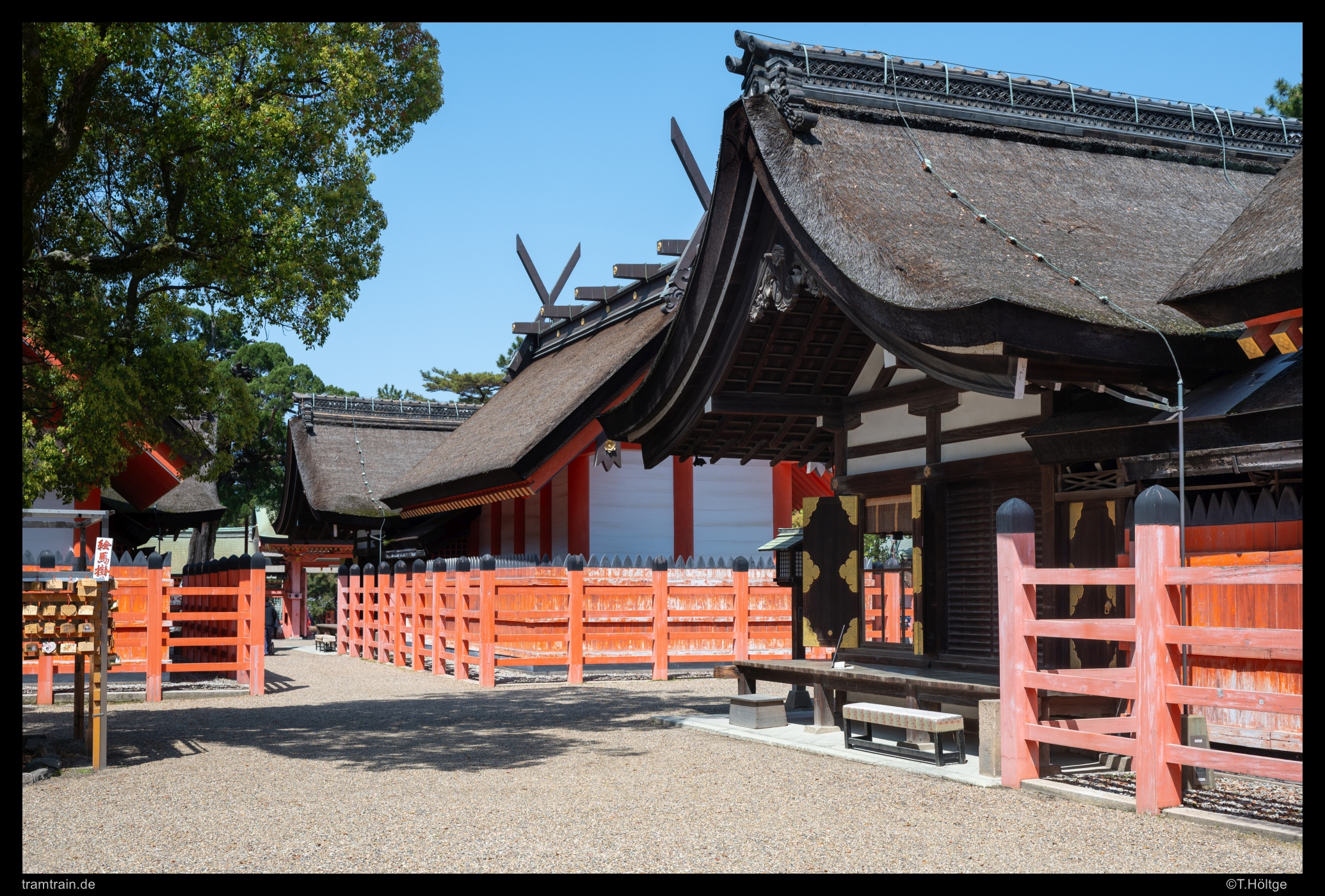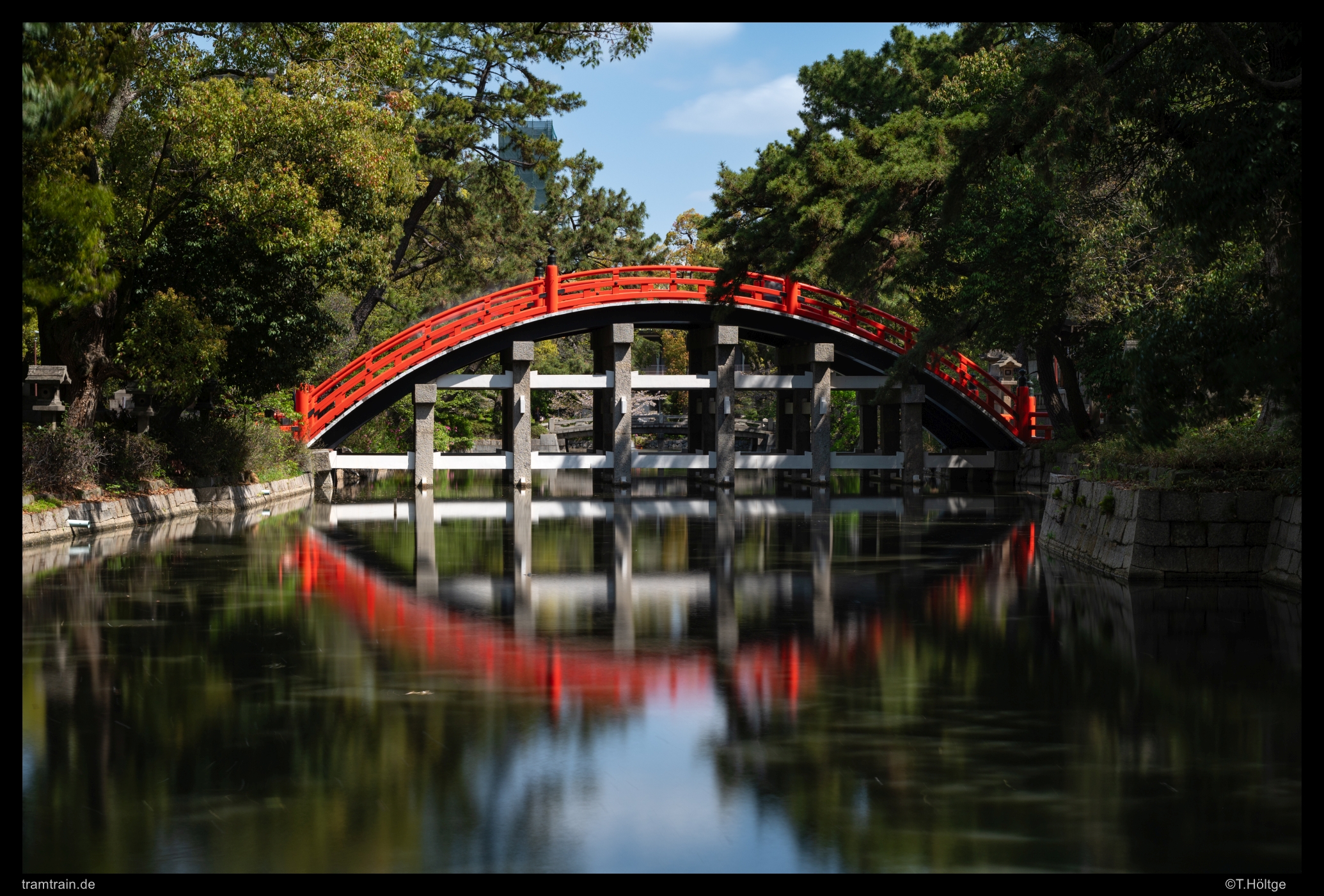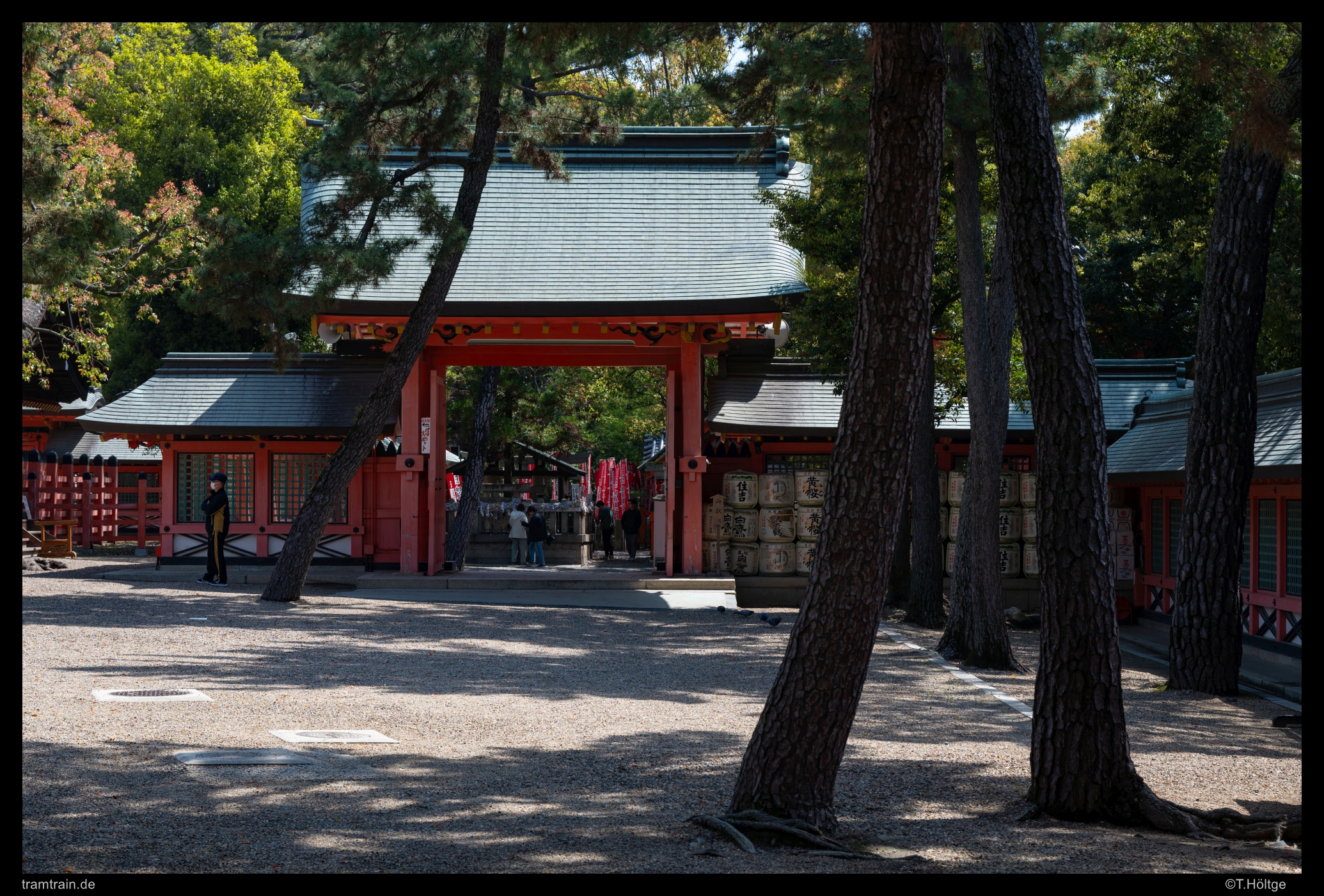Das Morgenlicht war jetzt genauso durch wie die Frühspitze, sodass ich nun Zeit hatte, eine kleine Runde durch den Sumiyoshi-Taisha-Schrein zu drehen. Der Sumiyoshi-Taisha gilt als Hauptschrein von über 2000 Sumiyoshi-Schreinen in ganz Japan. Er wurde vermutlich bereits im 3. Jahrhundert gegründet. Für Details gibt es über diesen auch einen deutschen Wikipedia-Eintrag, ansonsten bietet sich meist das Übersetzen der japanischen Wikipedia ins Englische an. Ich hatte mal wieder wenig bis gar keine Ahnung davon, was ich hier jeweils genau vor mir hatte und welche religiöse Bedeutung dem jeweils beigemessen wird. Aber einfach ein wenig respektvoll durch diese fremde Kultur schlendern und interessante Perspektiven entdecken, kann auch ganz schön sein.