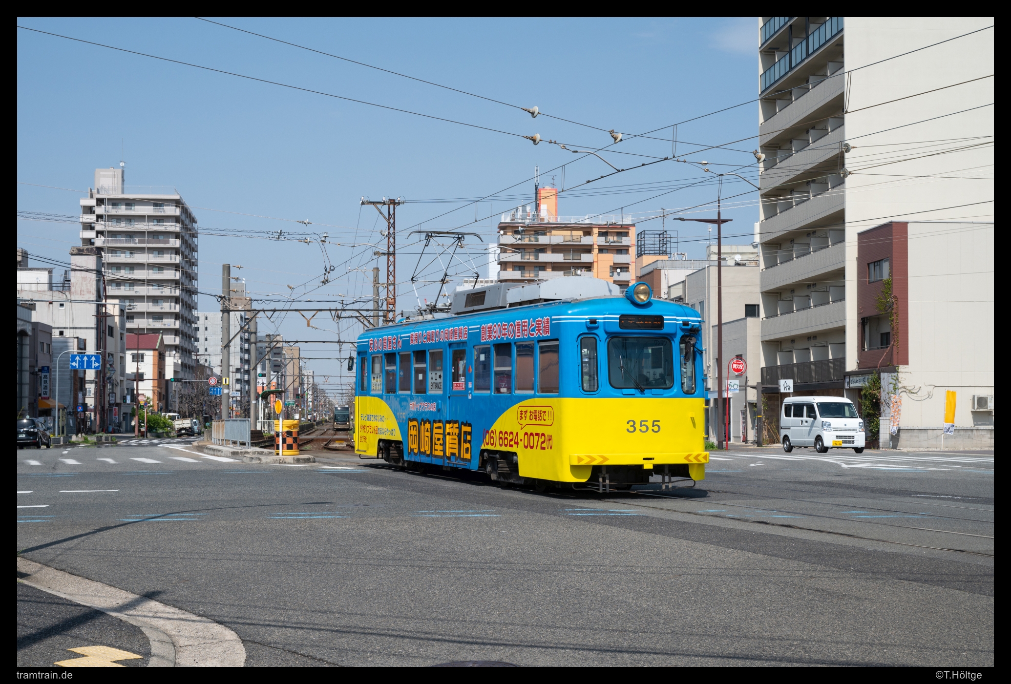 Die fünf Fahrzeuge 351 bis 355 der Baureihe 351 wurden von 1962 bis 1963 von Teikokusha Kogyo geliefert. Der vollständig aus Metall gefertigte Wagenkasten ist nahezu identisch zur Baureihe 501. 352 wurde im Jahr 2019 verschrottet, die übrigen vier Fahrzeuge sind noch im Einsatzbestand. Während unseres Besuches konnten wir den Wagen 355 auch außerhalb der Rush Hour auf der Gesamtlinie im Einsatz beobachten.