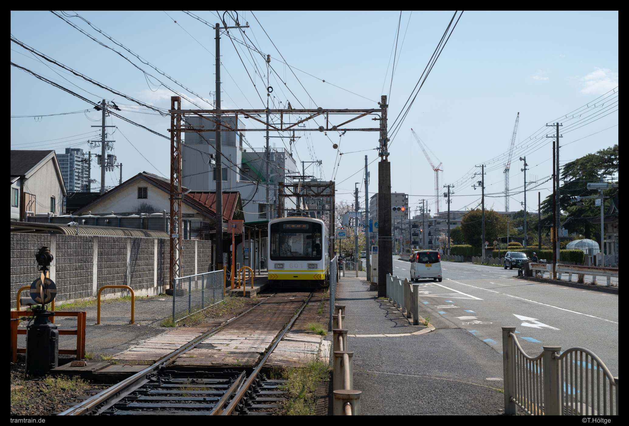 Wagen 605 erreicht die Haltestelle Sumiyoshi an der Verzweigung der beiden Streckenäste.