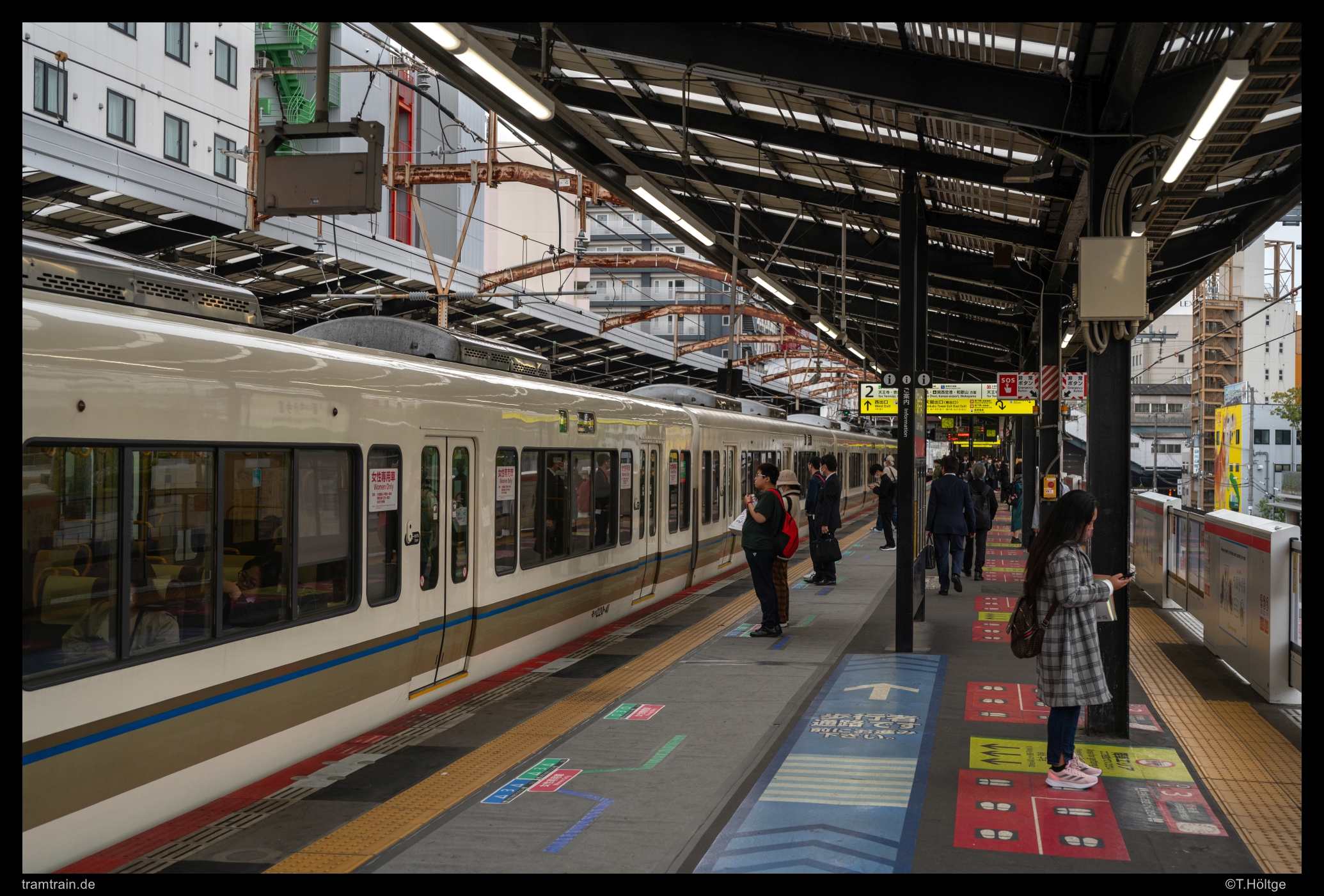 Kurze Kommunikation Richtung Kyōto, wann wir uns dort treffen wollen, aber auf der Kapspurstrecke lief es heute irgendwie nicht, womit die Ankunft etwas wackelig wurde. Ein Brand an der Strecke hatte heute im Tagesverlauf für ordentlich Durcheinander gesorgt. Warum ich von hier nicht einfach nach Shin-Osaka und dann mit dem Shinkansen gefahren bin? Keine Ahnung… Irgendwie war da ein schwerer Denkfehler drin, sodass ich mit der Loop Line zur Ōsaka Station fuhr, um dort in die Kapspur nach Kyōto umzusteigen.