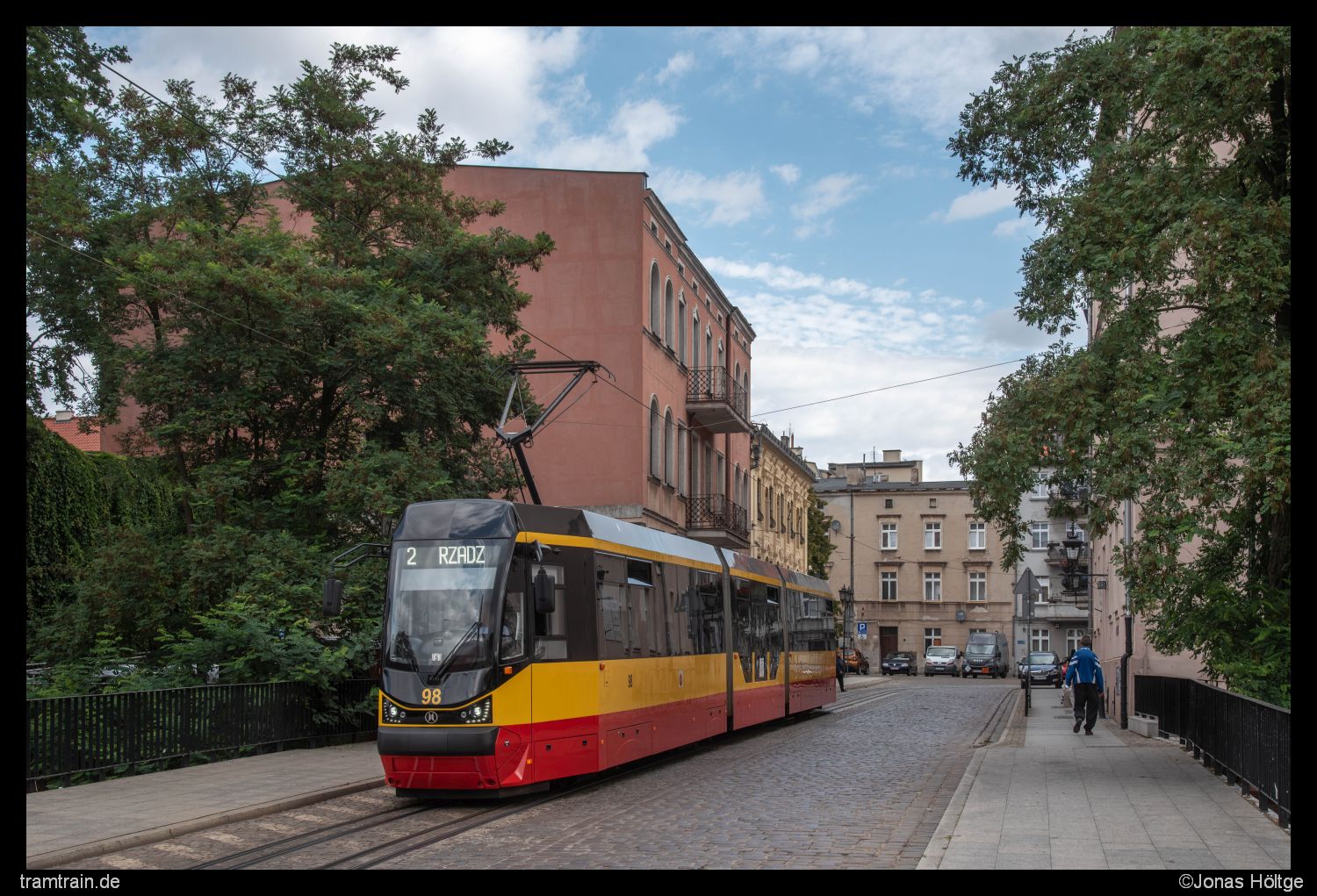 Aus den dunklen Häusergassen der Innenstadt ein wenig befreit, wurden die Bilder direkt wieder etwas heller. So gelang mir ein Bild von Wagen 98, der gerade von der Station Rynek Główny kommend die Innenstadtdurchfahrt verließ.