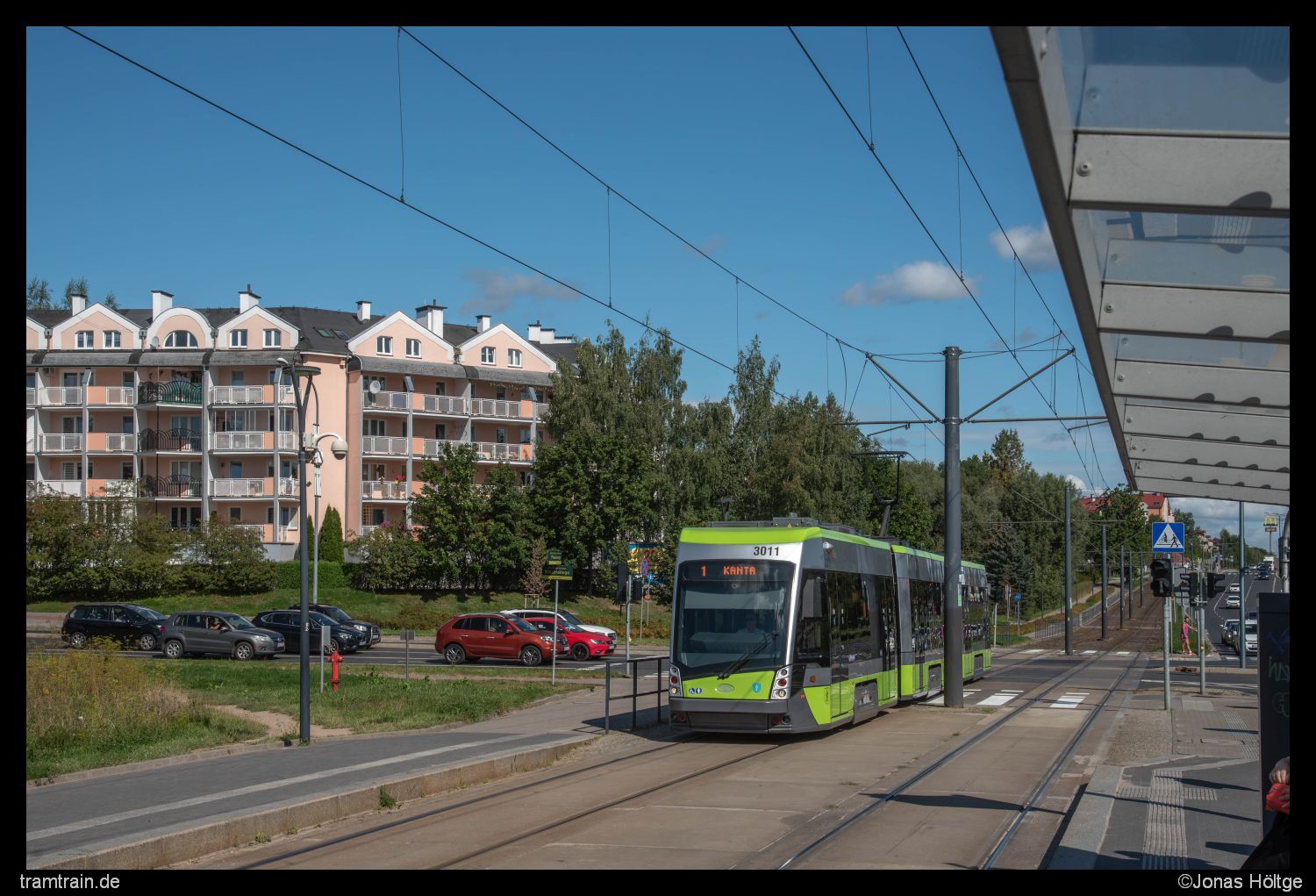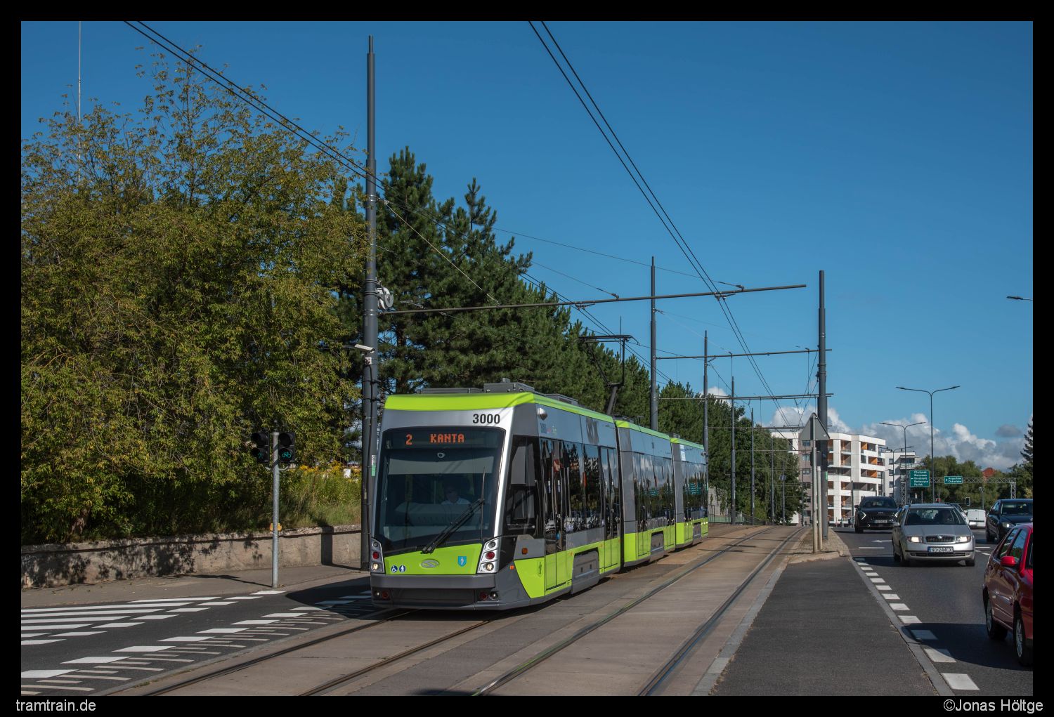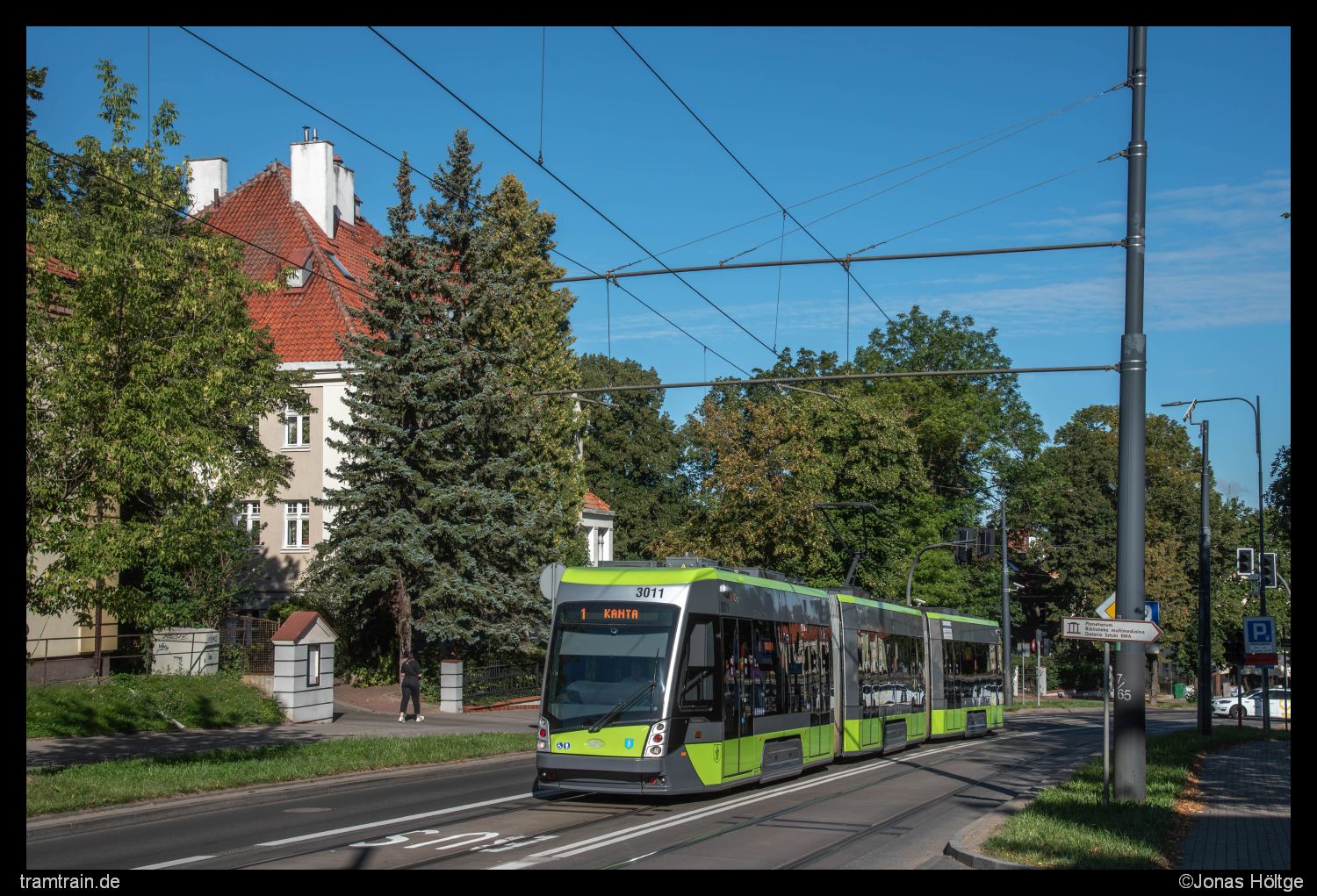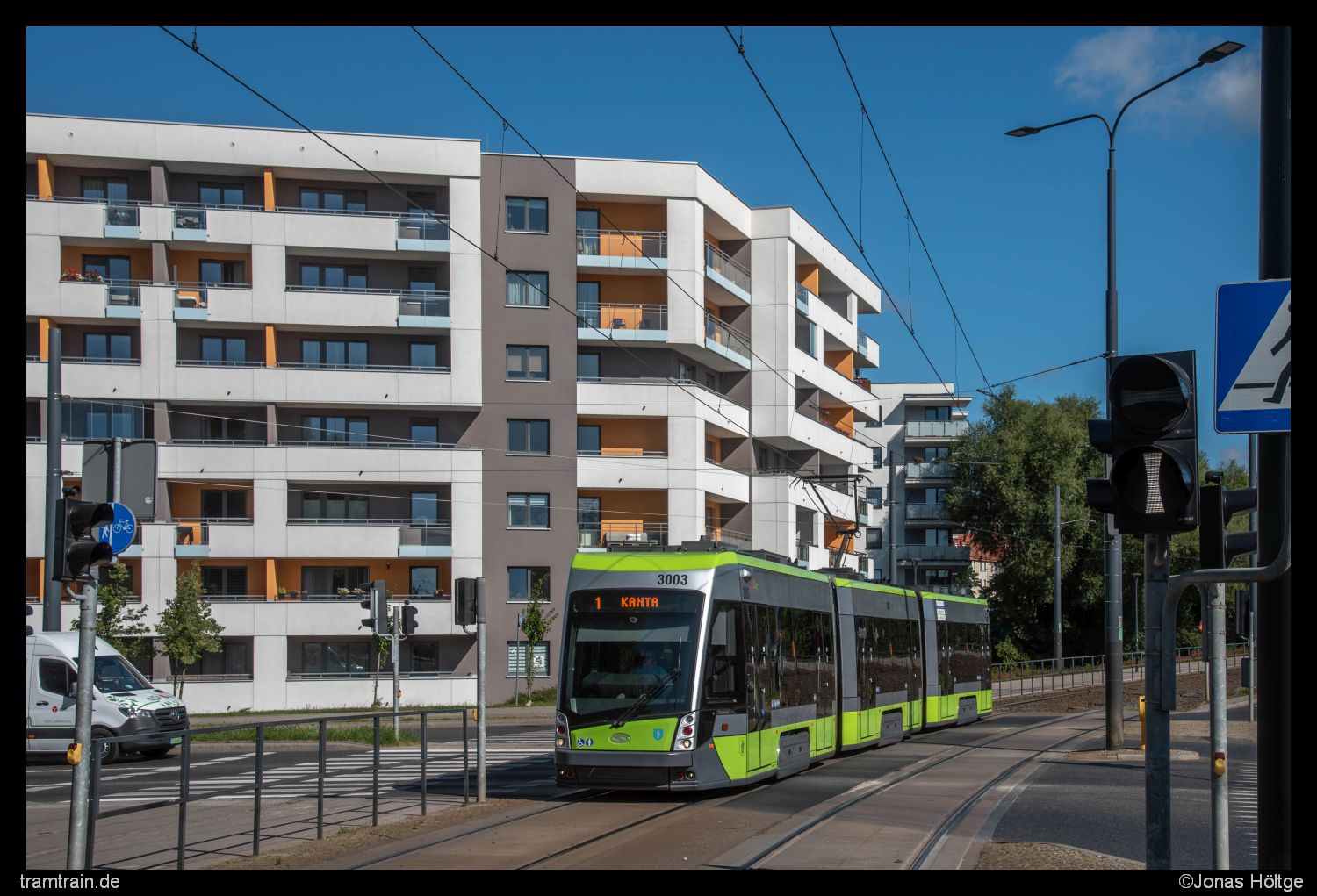 Mit dem folgenden Kurs der Linie 1 verdichteten sich langsam aber sicher die Zeichen, dass auf diesem Ast nur die ältere Fahrzeuggeneration der Solaris-Fahrzeuge unterwegs war. Auch Wagen 3003 gehörte zu dieser Fahrzeugserie. Ich hatte mich für das Bild einige Meter nach vorne verschoben, um so das Haus mit moderner Architektur größer ins Bild zu bekommen, welches bereits im vorherigen Bild im Hintergrund zu sehen war.