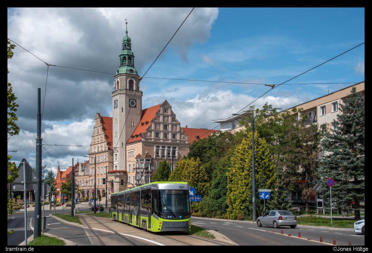 Das Motiv des Betriebs von Allenstein stellte in jedem Fall das Rathaus von Allenstein dar, welches sich nur wenige Meter hinter der Haltestelle Centrum erhob. Kurz nach der Haltestelle wird die Strecke der Straßenbahn bis zur wenige Meter entfernten Endhaltestelle einspurig. Wagen 3021 wartete kurz vor Beginn des eingleisigen Stücks auf seine Phase, bevor es weiter in Richtung Endstation ging.