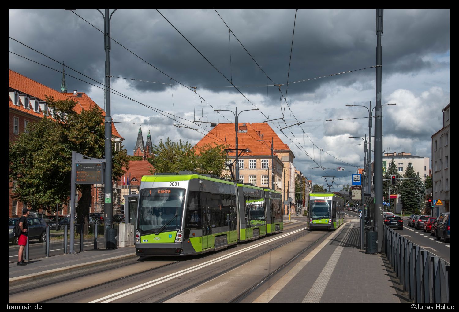 Der Betrieb von Allenstein wurde erst im Jahr 2015 eröffnet und hatte damals nur einen ernsthaften Linienast zu bieten. Dieser wurde durch die erste Charge Niederflurwagen, die Wagen 3000 bis 3014 von Solaris, bedient. Ende 2023 wurde dann ein weiterer nochmal fast gleich langer Linienast eröffnet, der die Beschaffung neuer Fahrzeuge notwendig machte. Dementsprechend folgte bereits ab 2020 die zweite Niederflurserie des Betriebs vom türkischen Hersteller Durmazlar mit den Nummern 3015 bis 3026. Ein festes Einsatzgebiet gibt es für beide Fahrzeugtypen nicht, bei meinem Besuch wurden aber zumindest die Linien 1 und 2 nach Kanta von der Solaris Serie bedient. Die Durmazlar-Fahrzeuge verkehrten dahingegen eher auf den neuen Linien 4 und 5 nach Pieczewo. Bei dem Betrieb handelt es sich nebenbei um den einzigen Betrieb, der nur mit Zweirichtungswagen und somit ohne Endschleifen bedient wird. Zwar verkehren inzwischen auch in Gorzow nur noch Zweirichtungswagen, der Betrieb war ursprünglich jedoch auch eine Einrichtungswagenbetrieb.