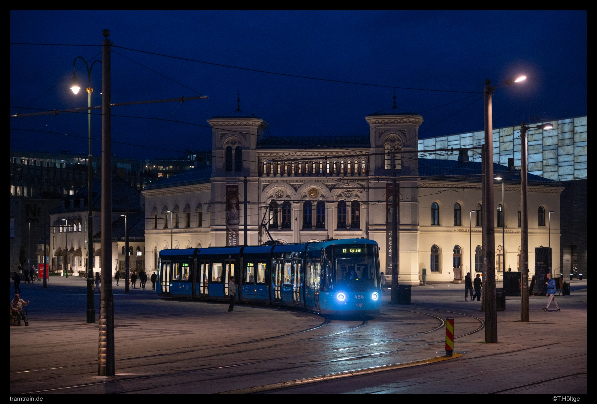 Da in diesem Jahr nicht gerade ein Nato-Gipfel auf dem Rådhusplassen stattfand, konnten auch die dortigen Motive mit dem Nobel Peace Center und dem Rådhus umgesetzt werden. Mit den Menschenmassen und dem dürftigen Viertelstundentakt ist das tagsüber eine kaum lösbare Aufgabe, zur blauen Stunde klappte es aber perfekt mit SL18 486 vor dem Peace Center…