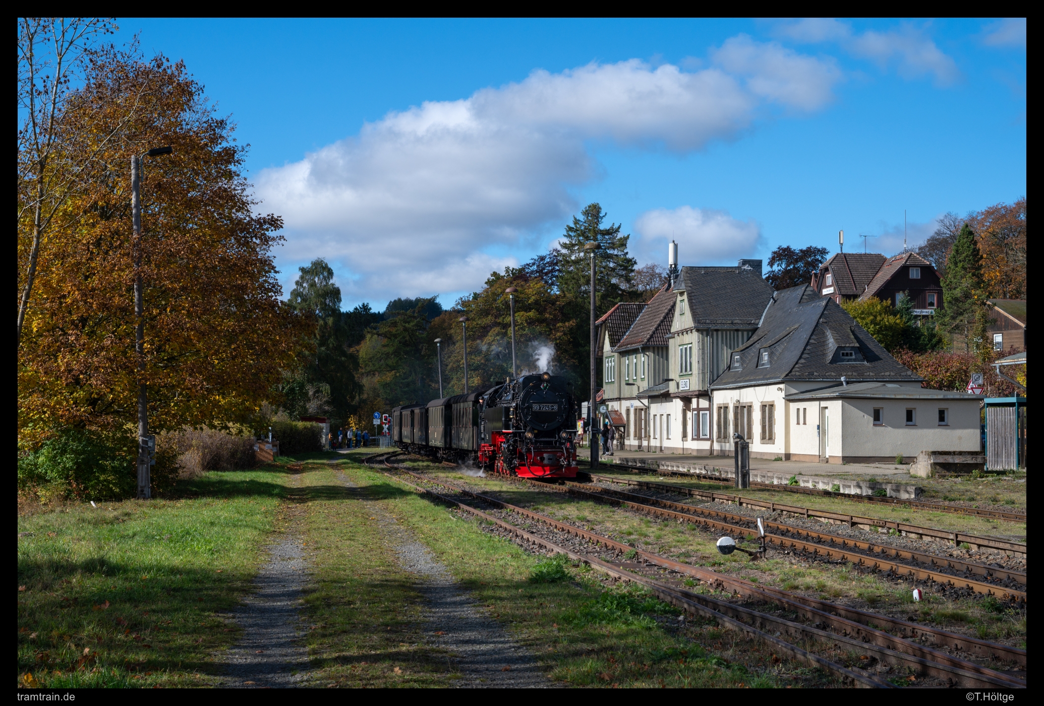Am Motivklassiker im Bahnhof Elend erwartete ich den Querbahnzug aus Nordhausen mit 99 7245-6 zum zweiten Mal, nachdem ein Wolkenschaden das erste Motiv bei Benneckenstein verdunkelt hatte.