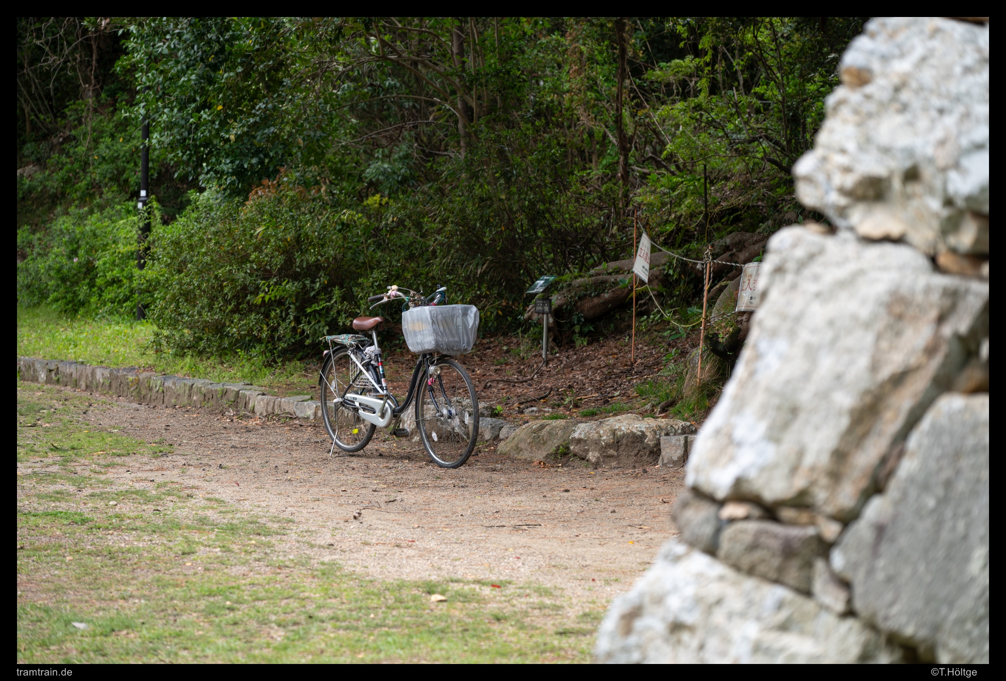 Ein typisches japanisches Fahrrad parkte an der Burg. Das sind hier noch richtige Drahtesel, nicht irgendwelche überzüchteten Kampf-E-Mofas 😉