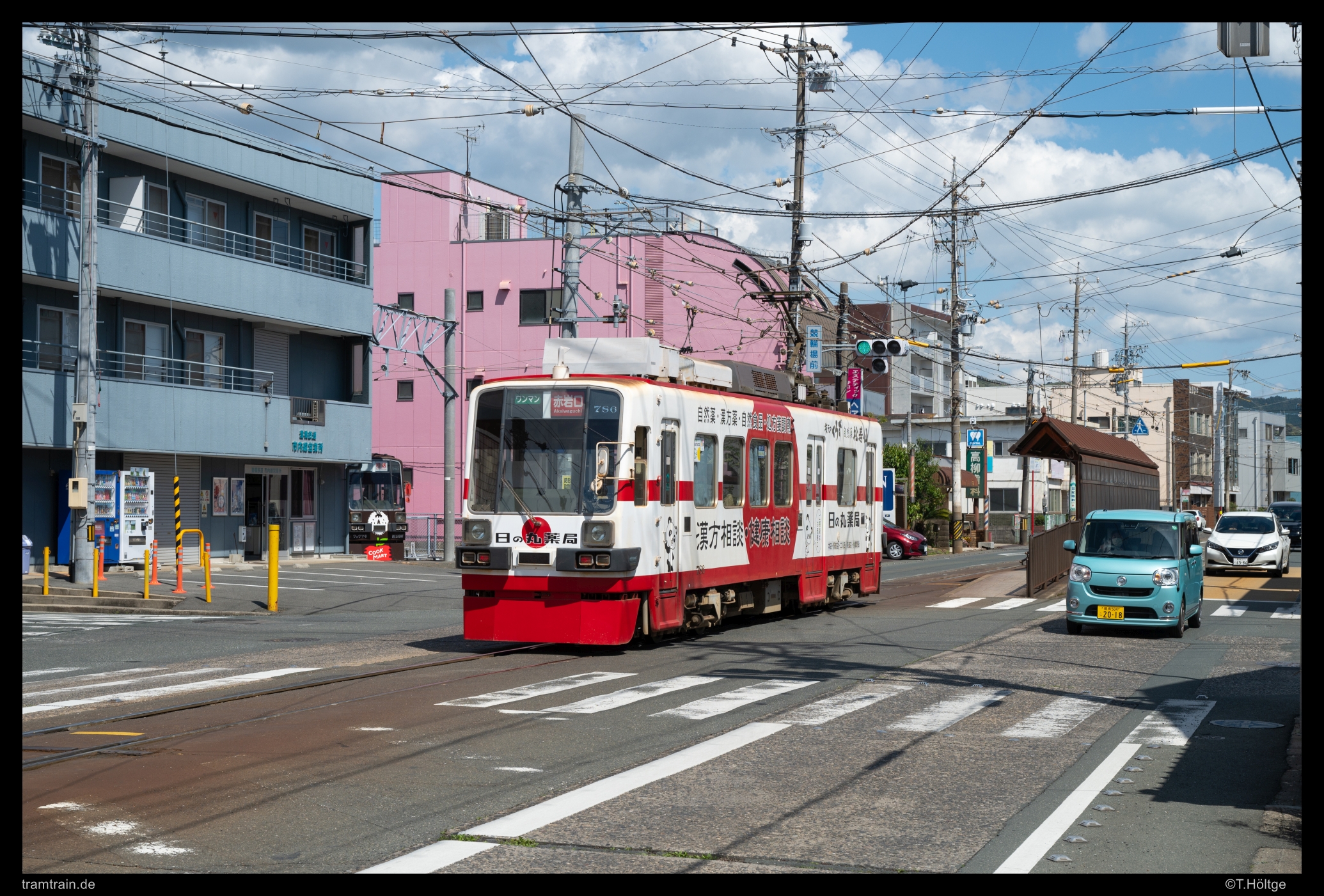 Die Fahrzeuge der Type Mo780 kommen, abgesehen von den verschiedenen Werbungen, äußerlich alle identisch daher. Weitgehend unverändert noch immer zum Auslieferungszustand aus Gifu. Mindestens vier der sieben Fahrzeuge standen am 15. April 2025 im Einsatz, zwei weitere sahen wir abgestellt im Depot und im Abstellgleis an der Haltestelle Keirinjo-mae.